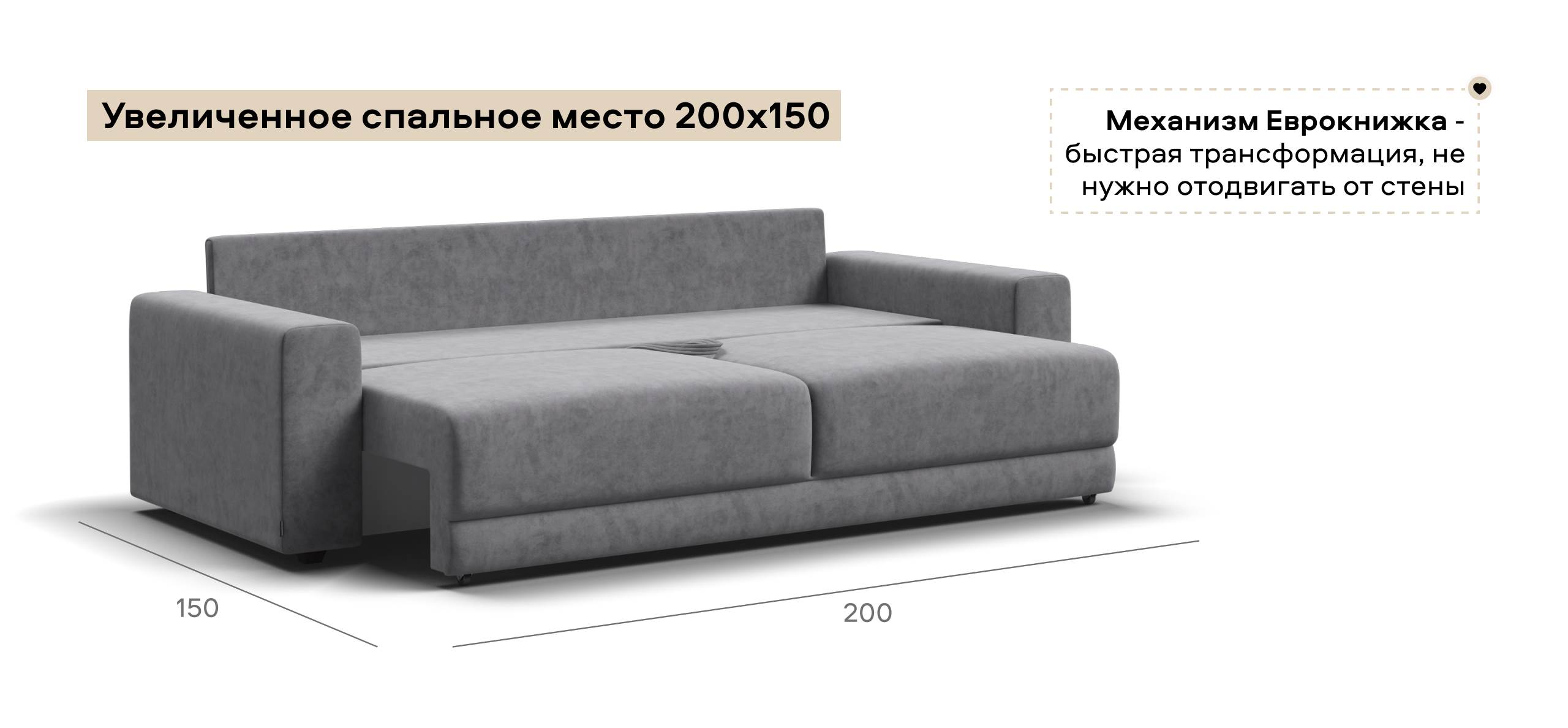 Оснащённый независимым пружинным блоком и высокоэластичной пеной Эластик Фоам с дополнительным слоем периотека, диван гарантирует анатомическую поддержку и комфортный сон. Простой и надёжный механизм трансформации «еврокнижка» позволяет легко преобразовать диван в просторное спальное место.