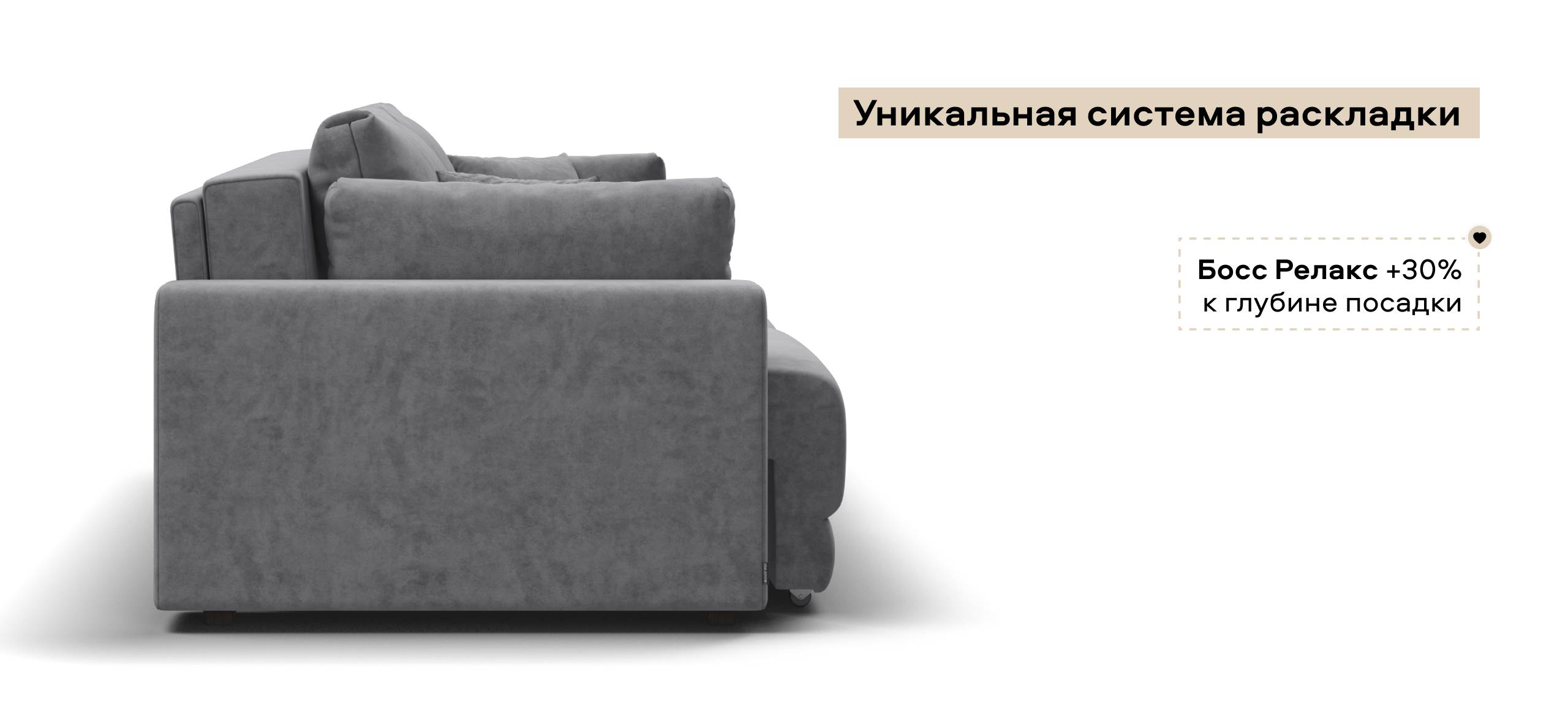 Босс Прайм — это сочетание современного дизайна и продуманной эргономики, создающее уютную атмосферу в любом интерьере. Визуально разделённое сиденье, широкие мягкие подлокотники и пышные подушки разного размера обеспечивают не только эстетическую привлекательность, но и максимальный комфорт.