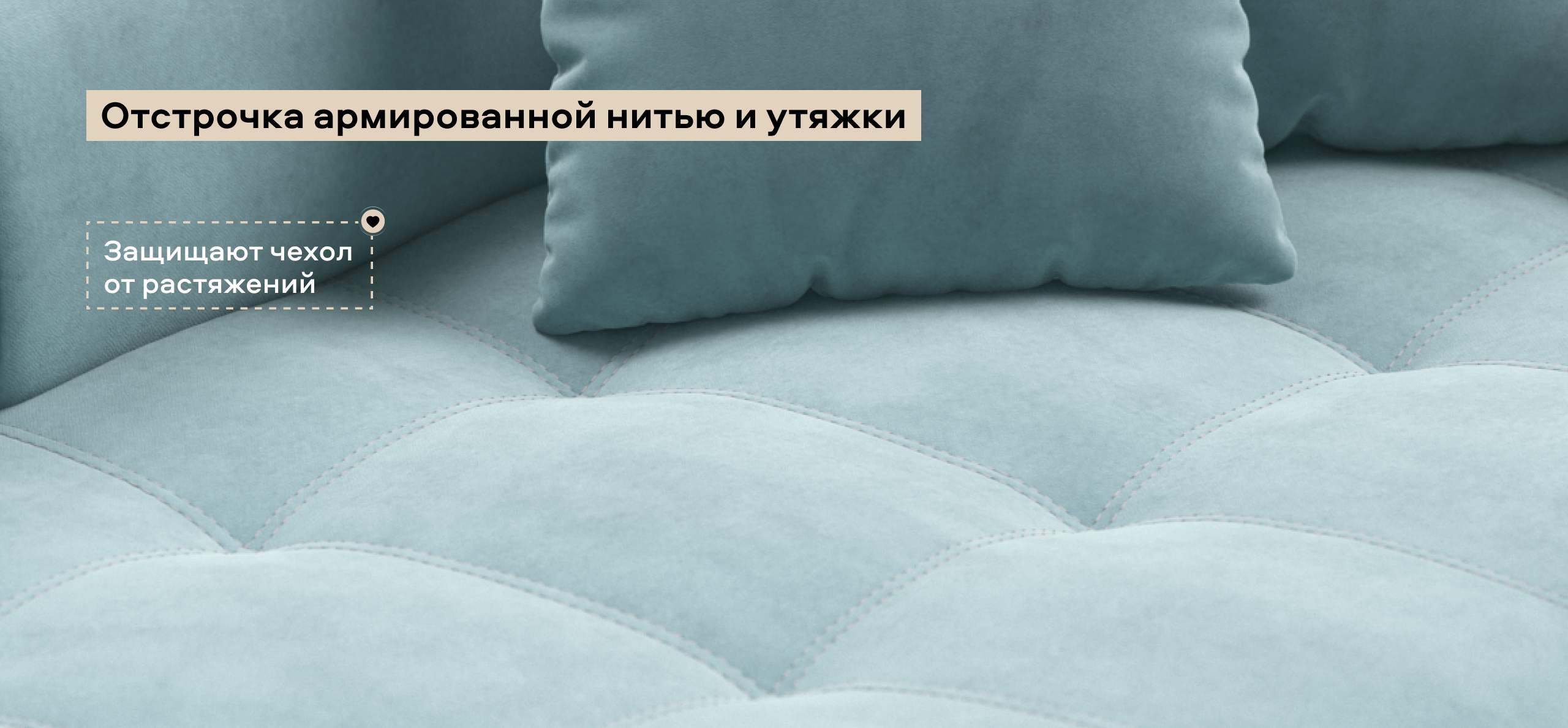 Декоративная строчка армированной нитью и двойная утяжка надолго сохранит внешний вид дивана.