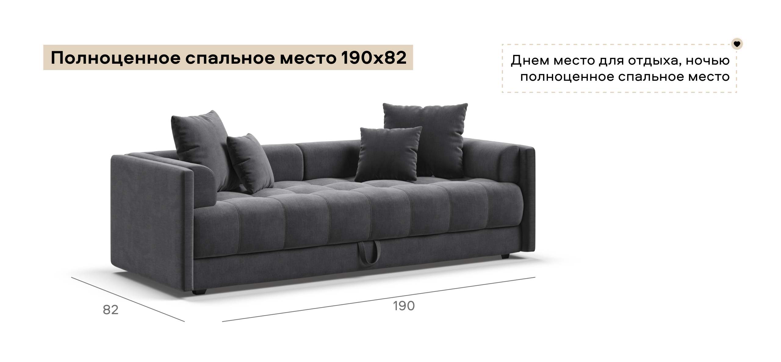 Тахта отлично сочетает в себе две функции: днем – уютное место для отдыха и работы в качестве дивана, а ночью полноценное спальное место. Формованные подушки-спинки помогут расслабиться во время отдыха, поддерживая голову в комфортном положении.