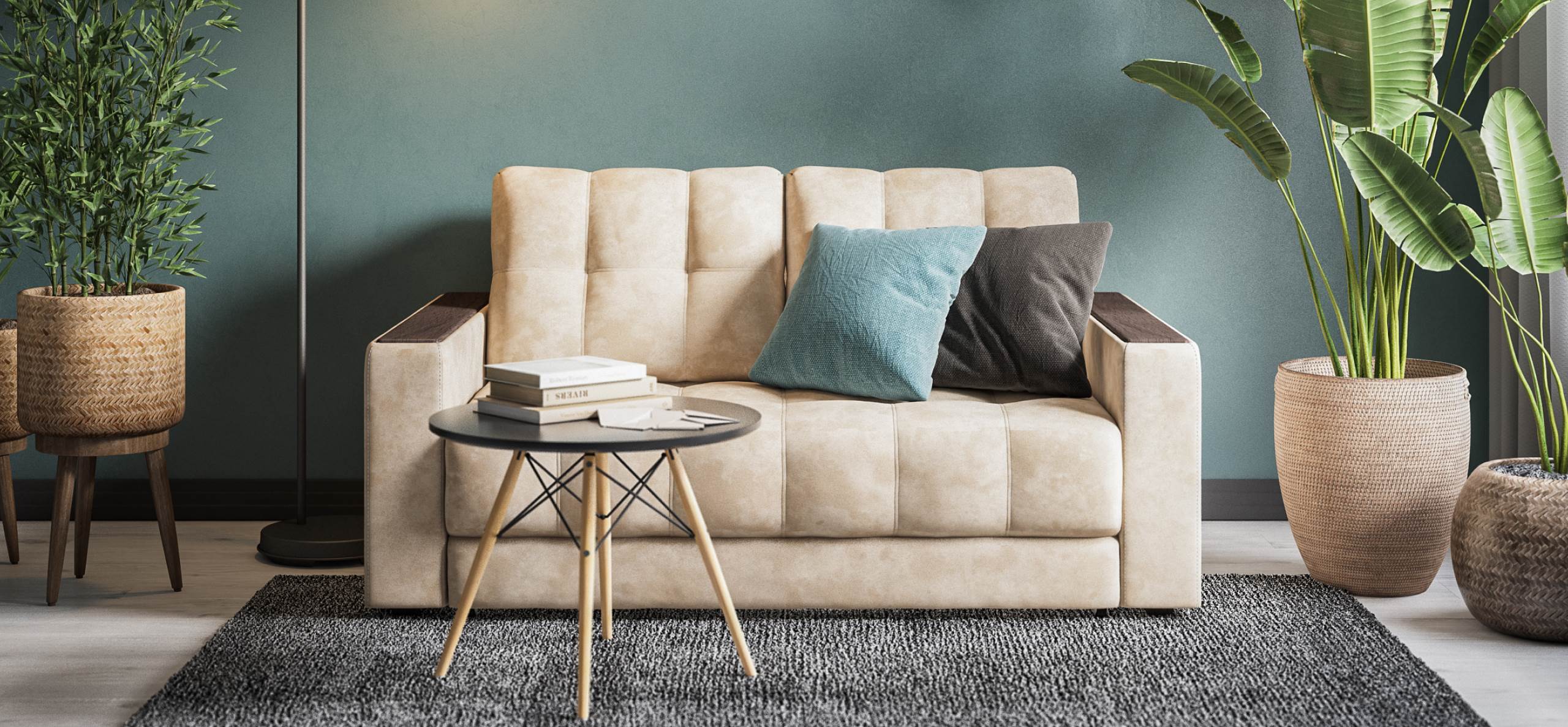Диван Босс двухместный велюр Алькантара пепел