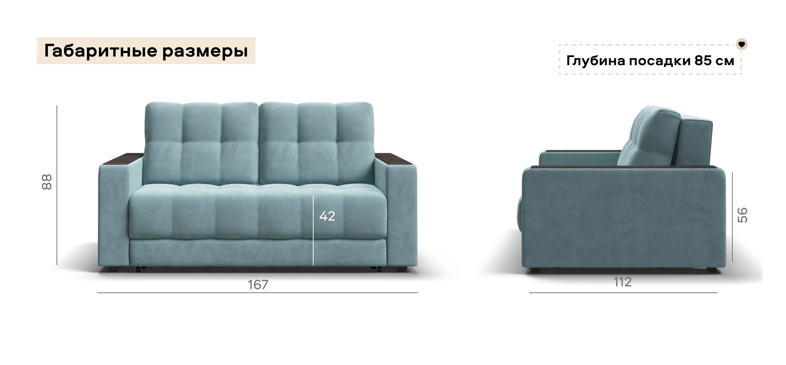 Диван компактный, но на двух человек места достаточно. Ткань чистится без проблем обычной щеткой.