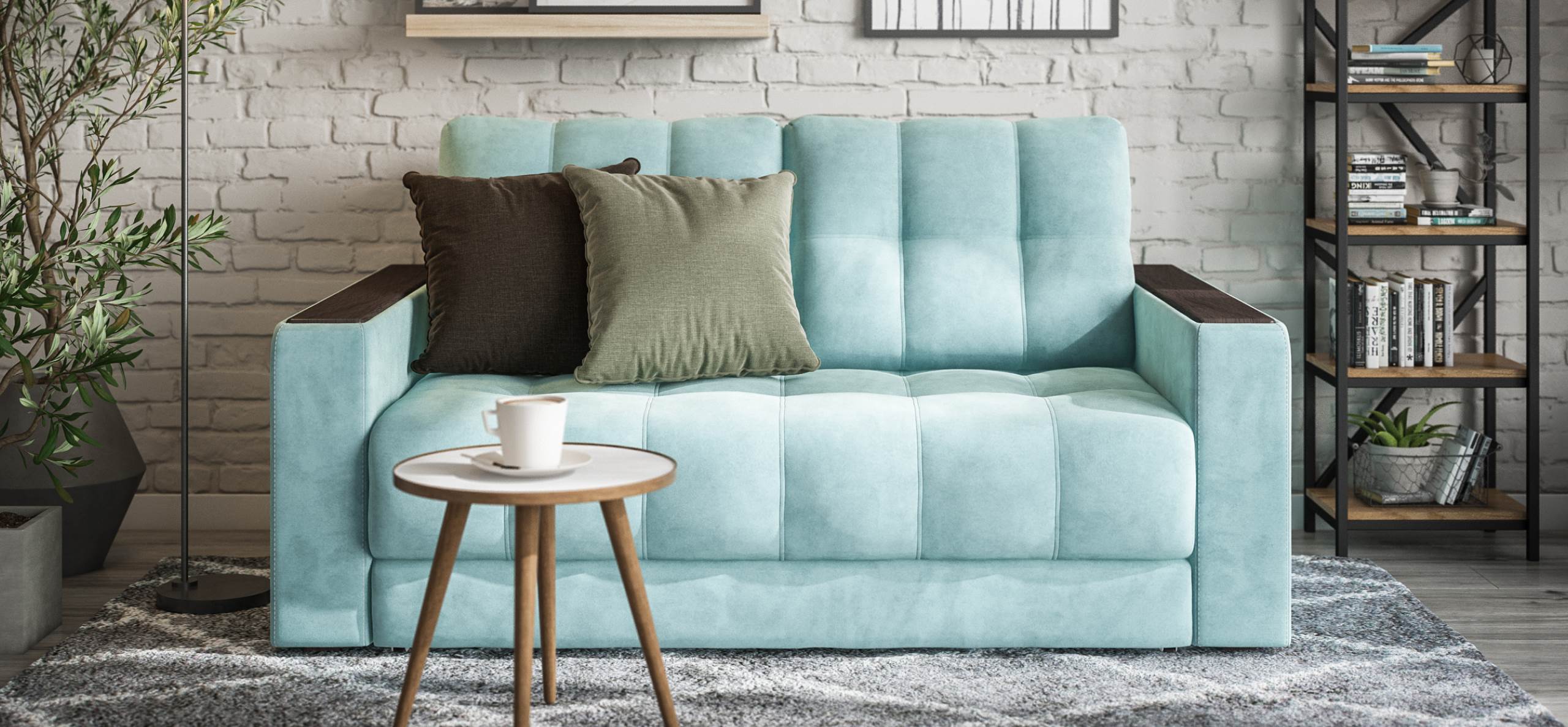 Диван Босс двухместный велюр Монолит аква
