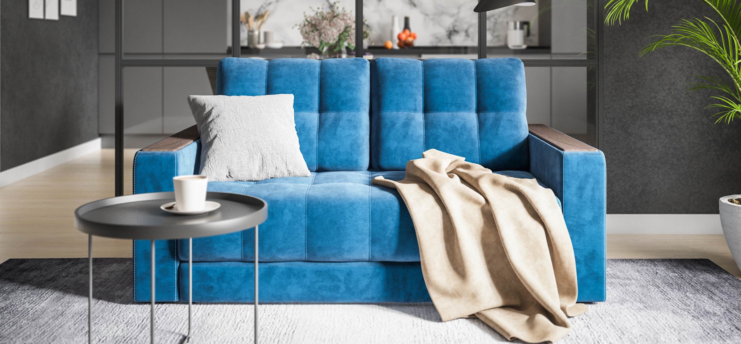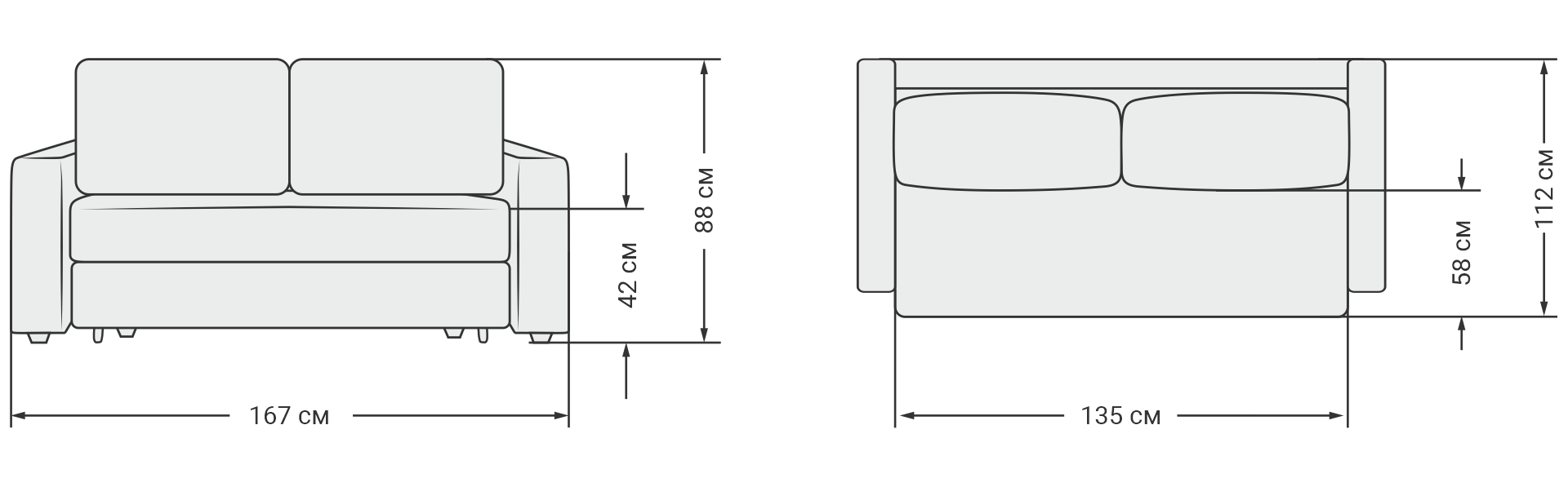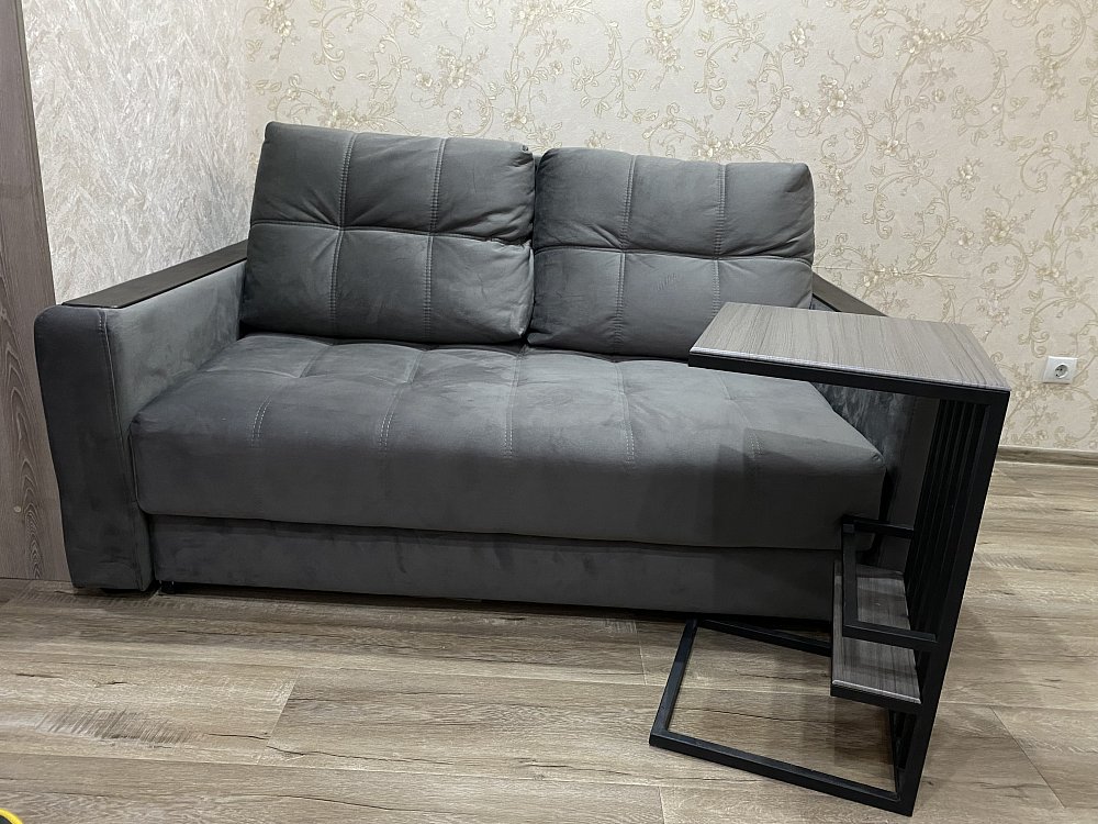 Диван компактный, но на двух человек места достаточно. Ткань чистится без проблем обычной щеткой.