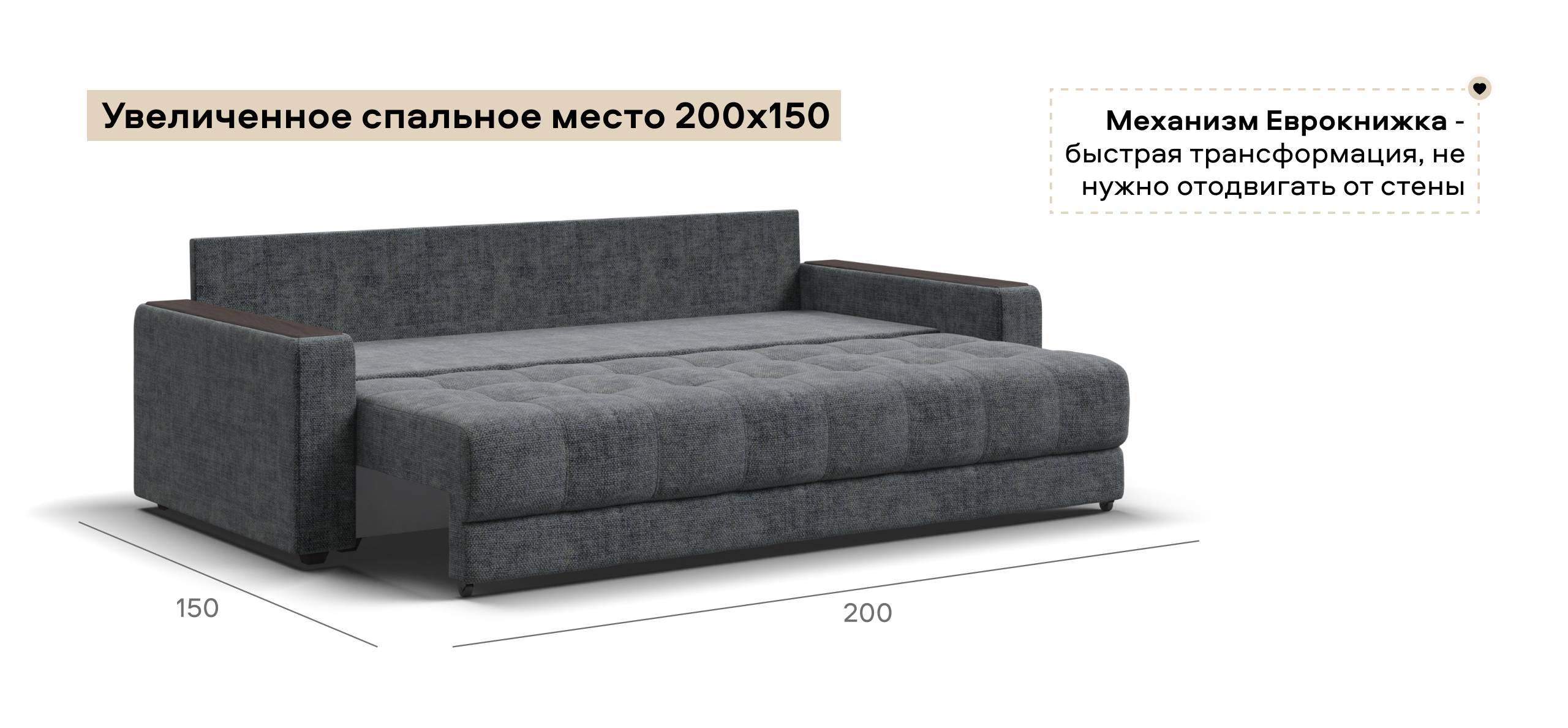 Легкая трансформация в три положения создаст для Вас максимально комфортный отдых, а улучшенное анатомическое основание в диване обеспечит Вам здоровый сон. Спинка защищает от соприкосновения со стеной во время сна.