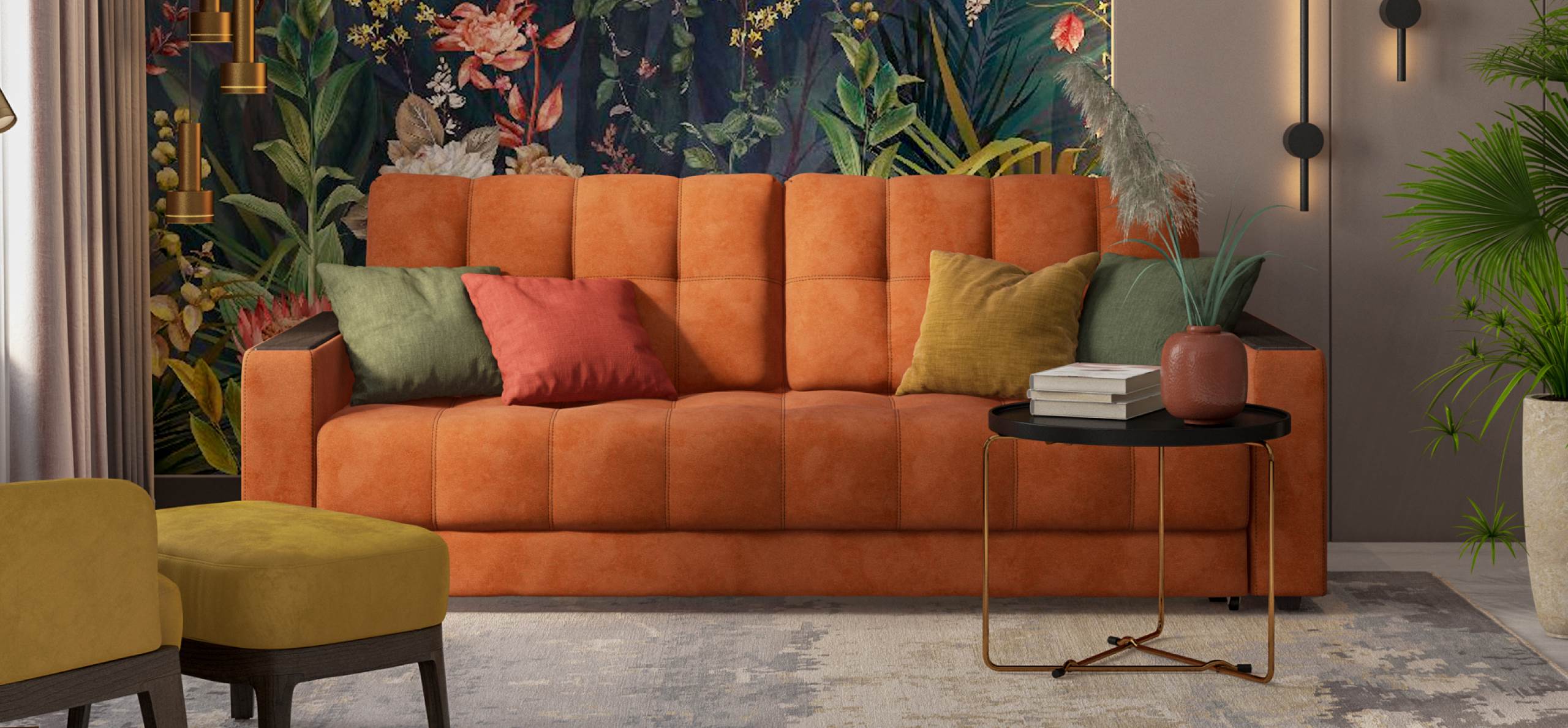 Диван Босс велюр Алькантара оранж