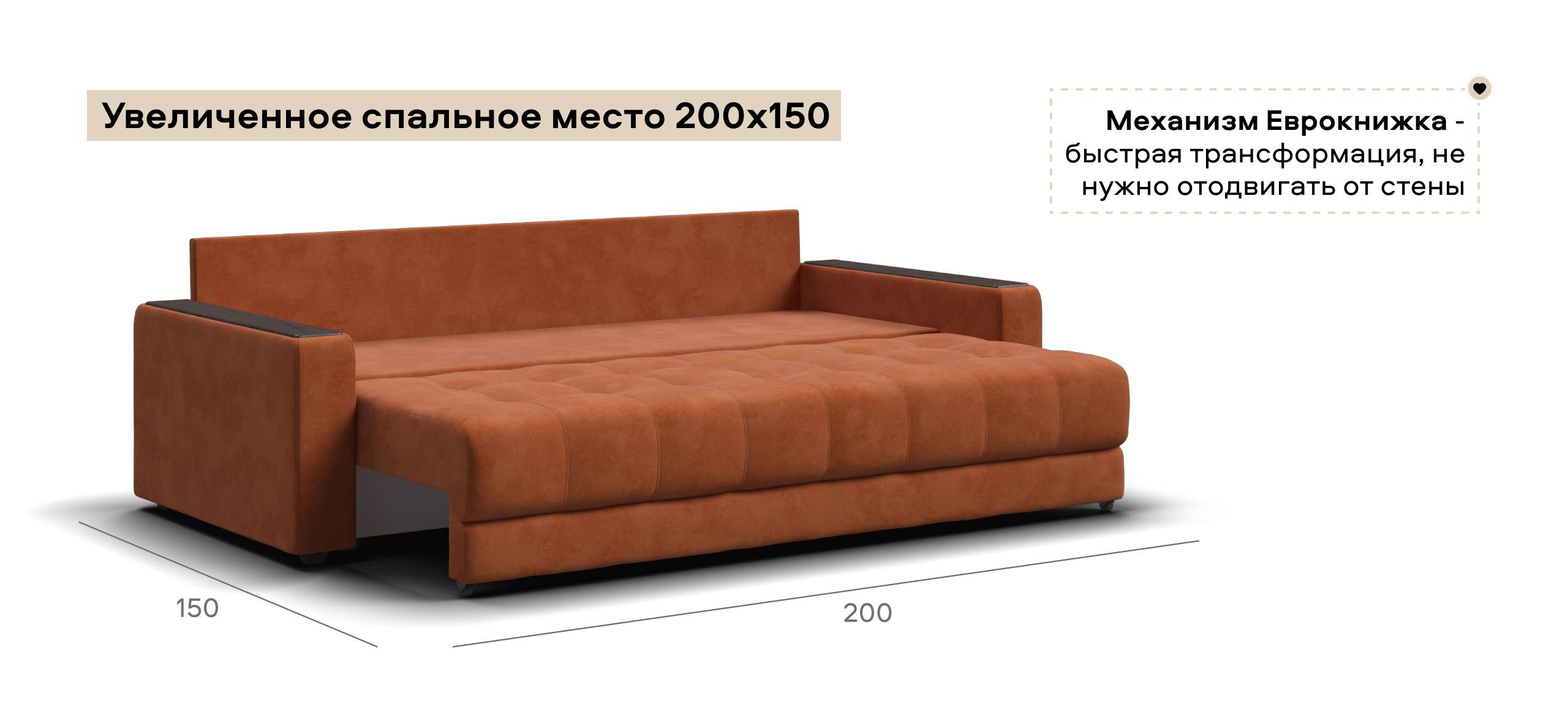 Легкая трансформация в три положения создаст для Вас максимально комфортный отдых, а улучшенное анатомическое основание в диване обеспечит Вам здоровый сон. Спинка защищает от соприкосновения со стеной во время сна.