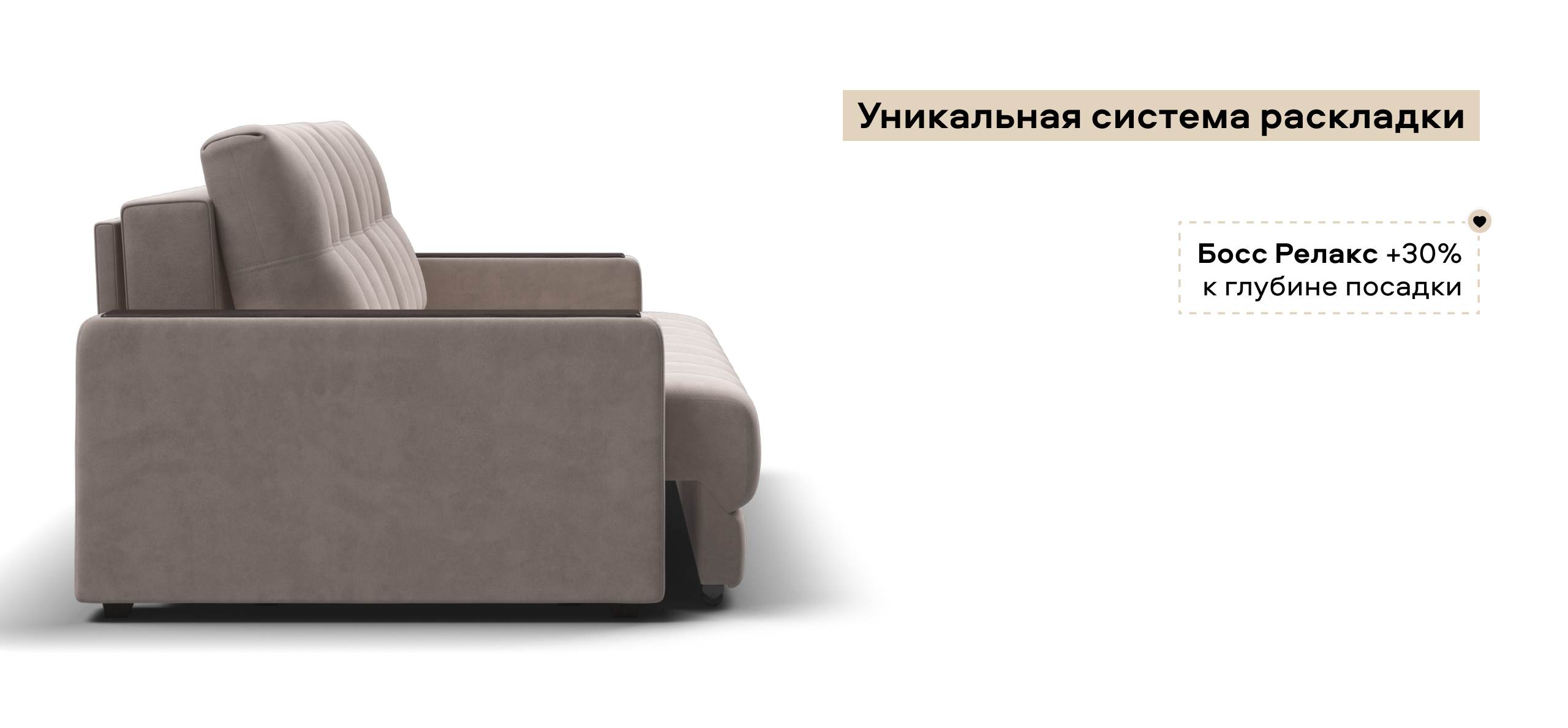Стильный диван для тех, кто ищет максимальный комфорт. Продуманный до мелочей диван Босс сочетает в себе надежный каркас, мягкие ткани, многофункциональность и быструю сборку за 1 минуту без инструментов - ощутите комфорт у себя дома!
