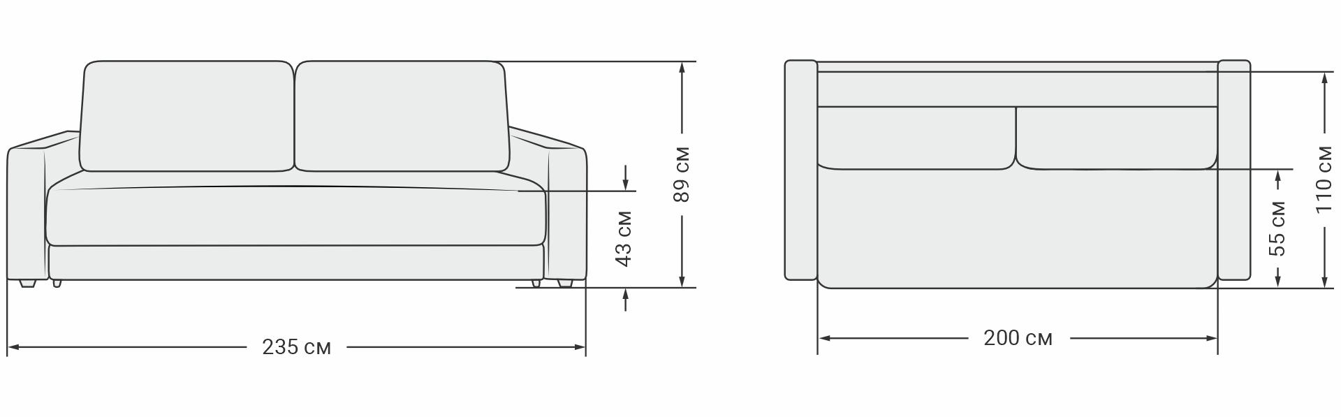 235x110x89 см