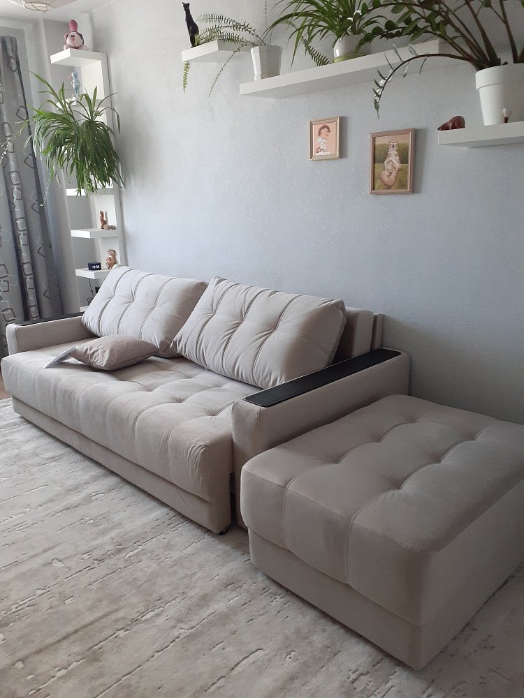 Благодаря дополнительному пуфу, который Вы можете приобрести к нему отдельно, прямой диван с легкостью становится полноценным угловым диваном.