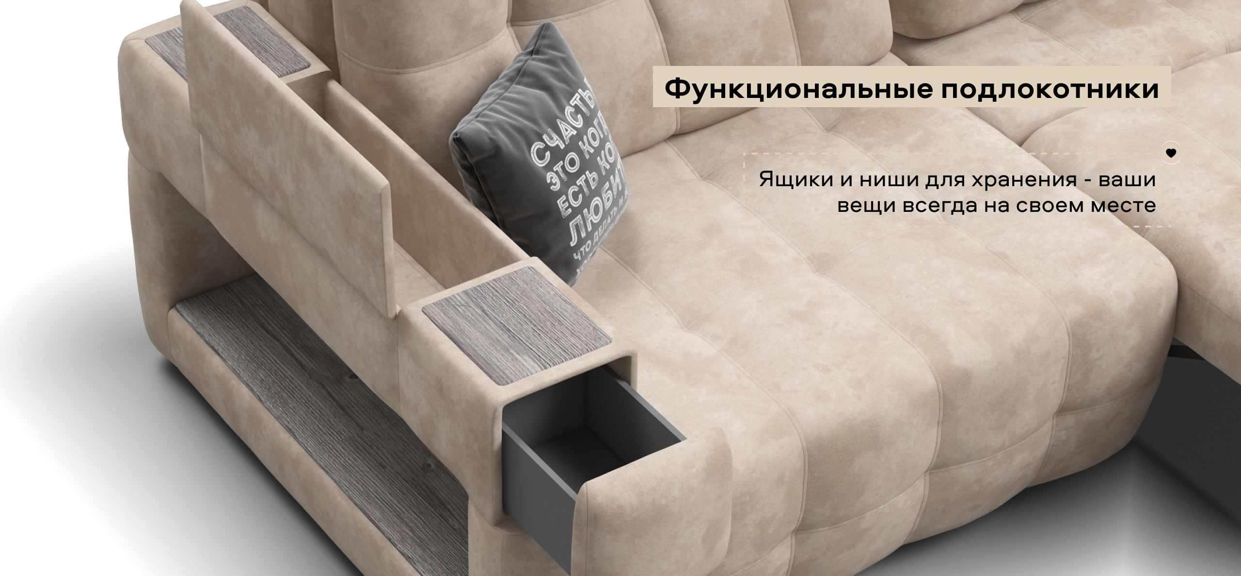Покупая диван Босс ХО Макс вы становитесь обладателем уникальных подарков: быстрая зарядка для смартфона, 2 стильных кружки, 2 удобных столика для ноутбука, 2 подушки, комплект запасных накладок на Подлокотники Фул, экоручки и средство для чистки Босс Клин