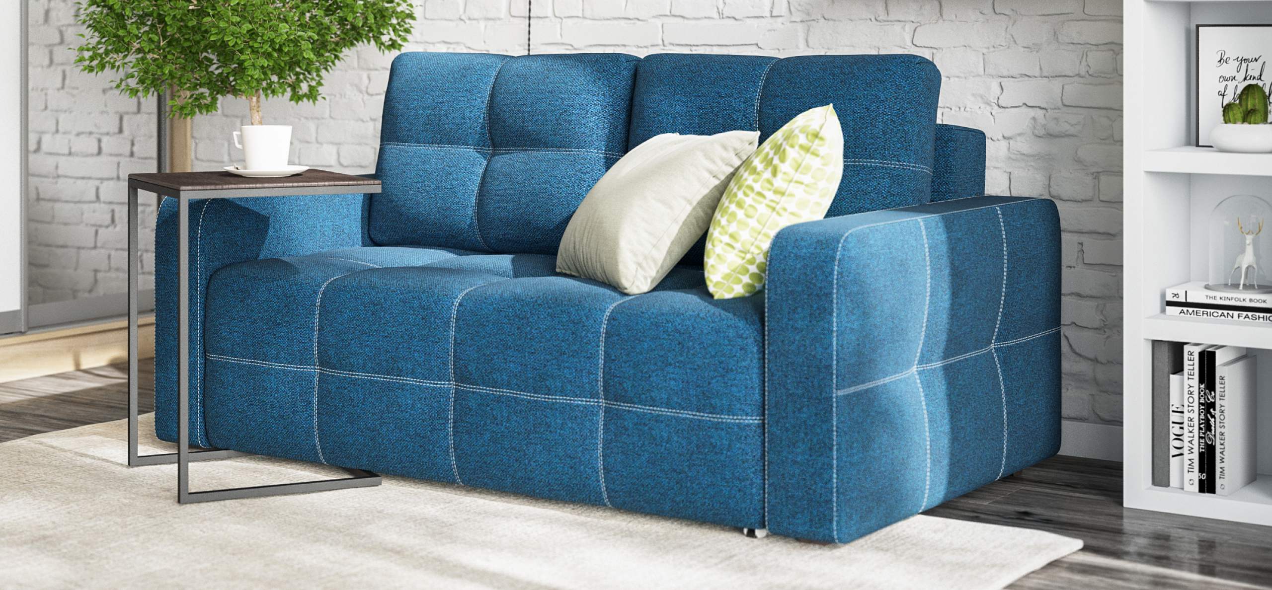 Диван Денди двухместный Рогожка Мальмо синий