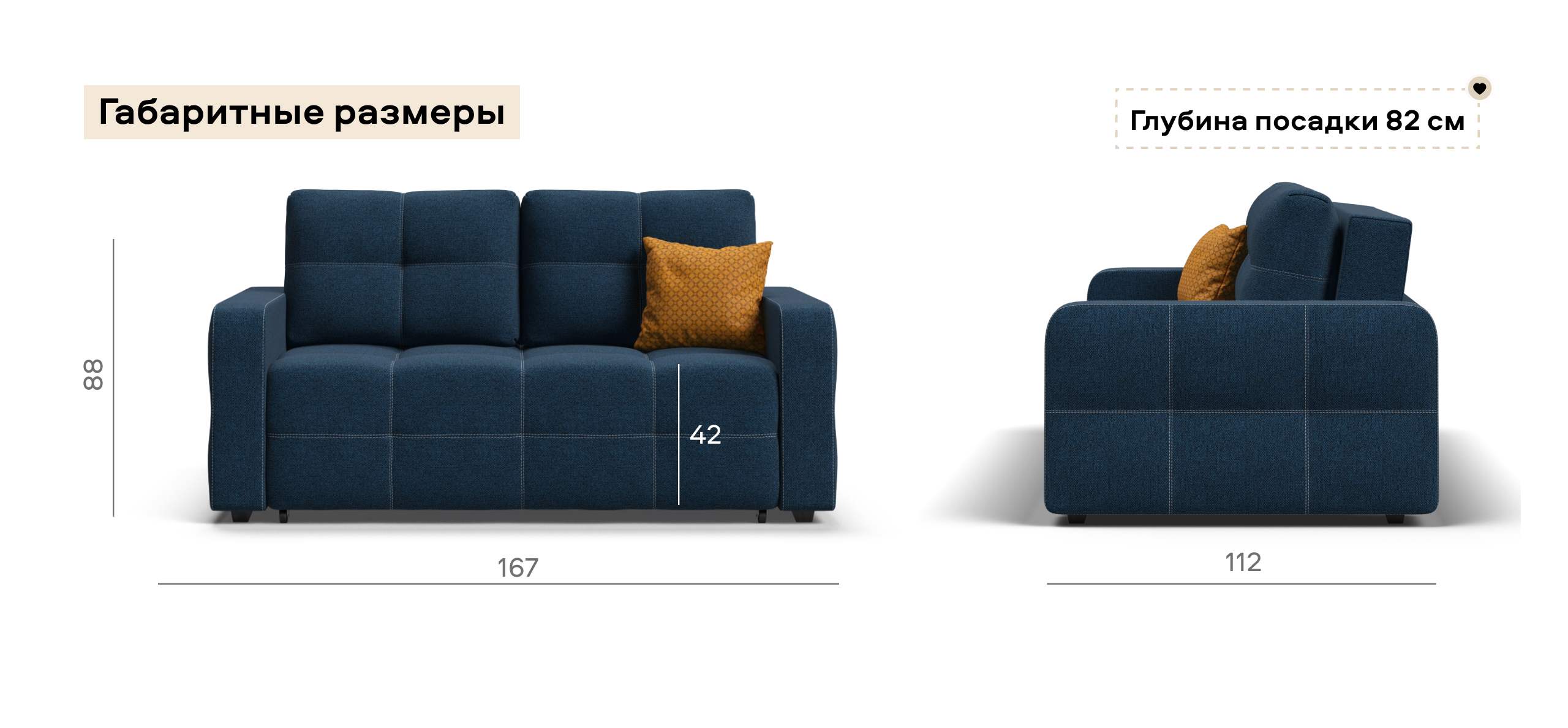 Небольшой размер дивана сочетается с оптимальным спальным местом, на котором могут с комфортом разместиться 2 человека.
