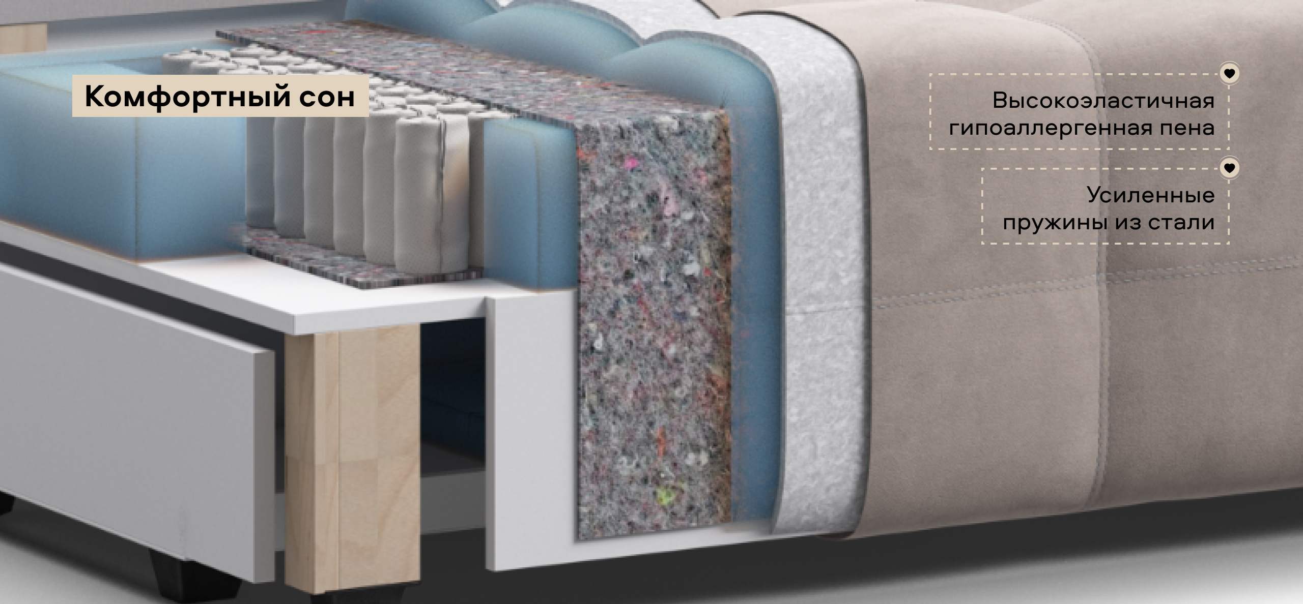 Независимые пружины и пена Анатомикс – оптимальная плотность для комфортного сна.