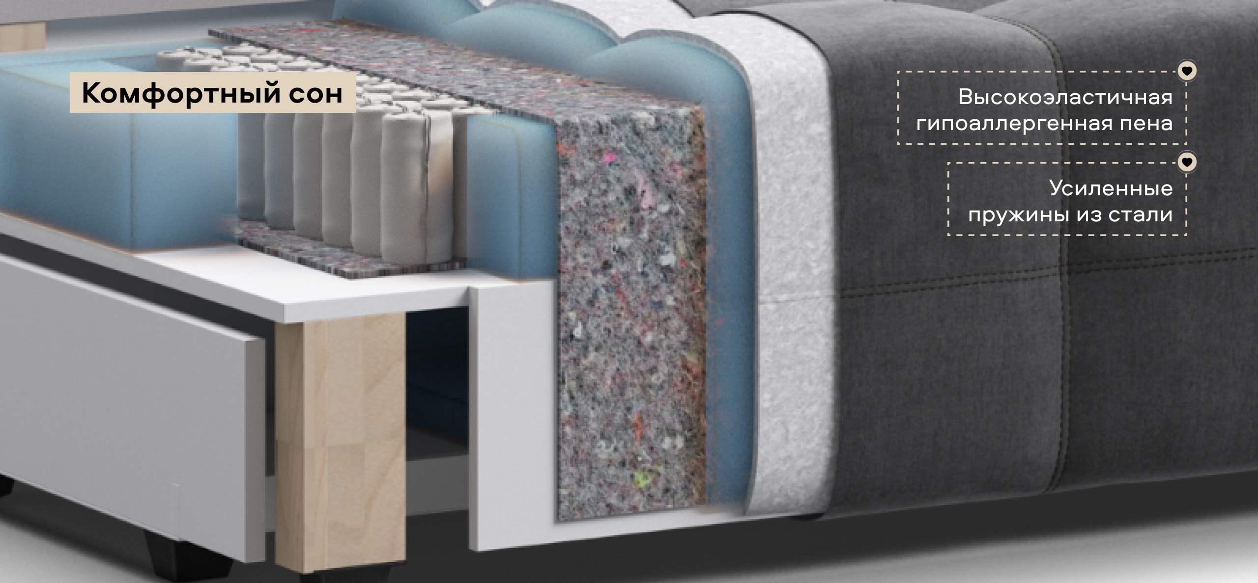 Независимые пружины и пена Анатомикс – оптимальная плотность для комфортного сна.