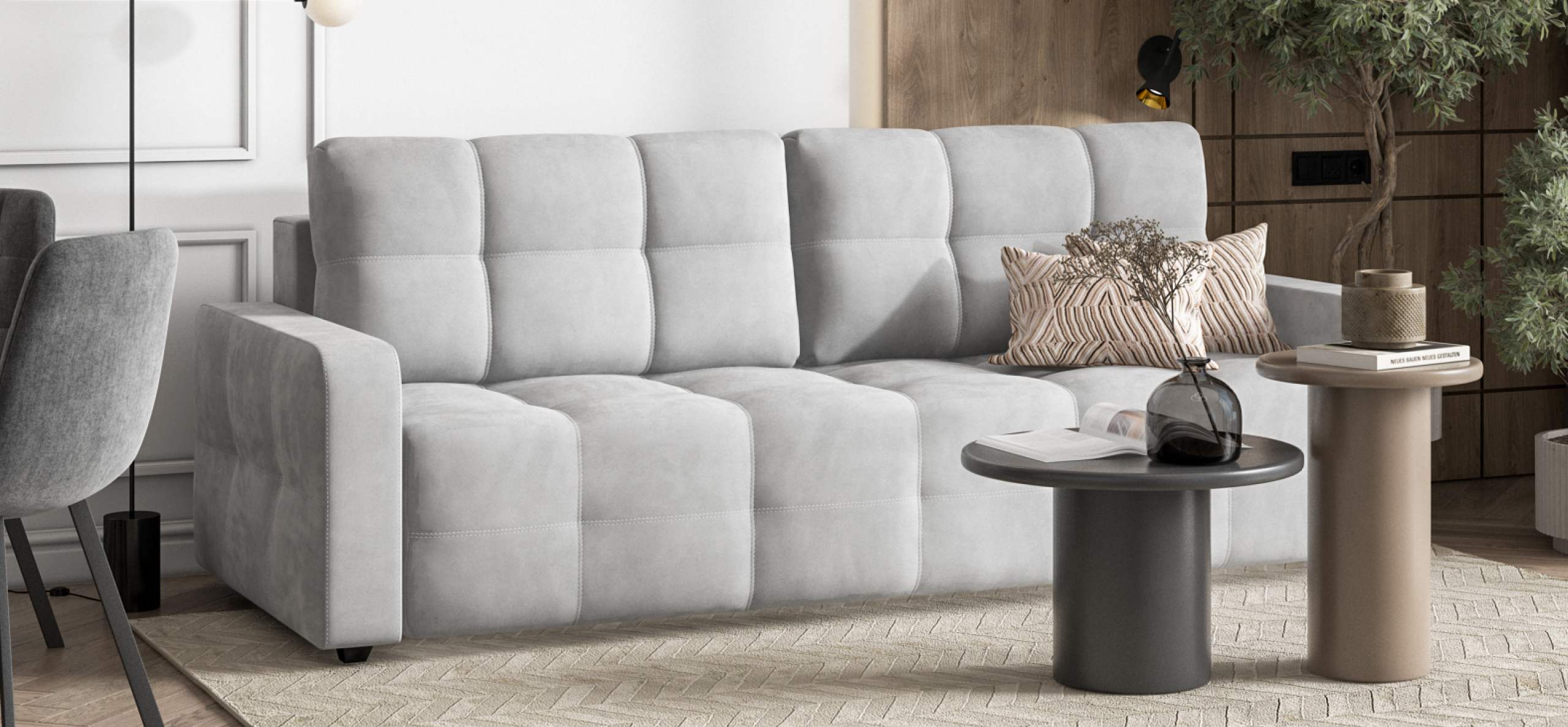 Декоративная строчка армированной нитью и двойная утяжка надолго сохранят внешний вид дивана.