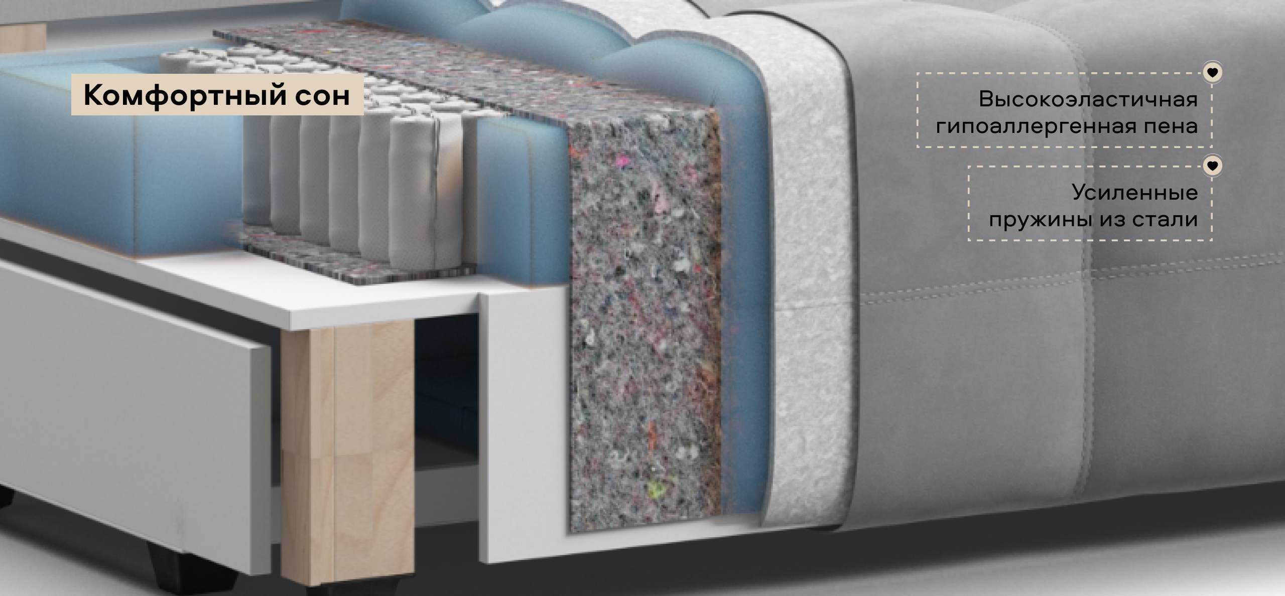 Независимые пружины и пена Анатомикс – оптимальная плотность для комфортного сна.