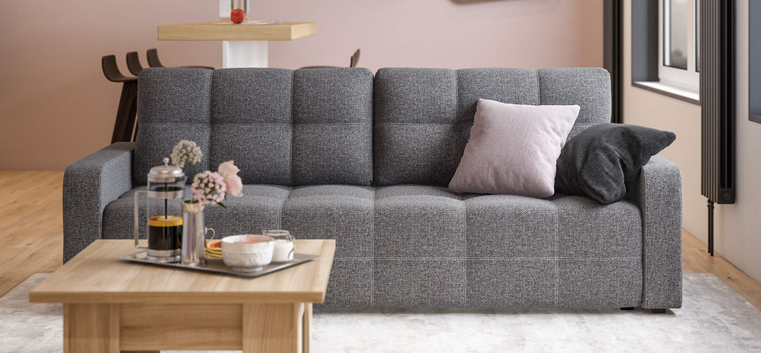 Диван Денди- с ним так легко создать настоящий уют и домашний комфорт. Мягкие приспинные подушки и независимый пружинный блок в основании обеспечат максимальный комфорт во время отдыха.