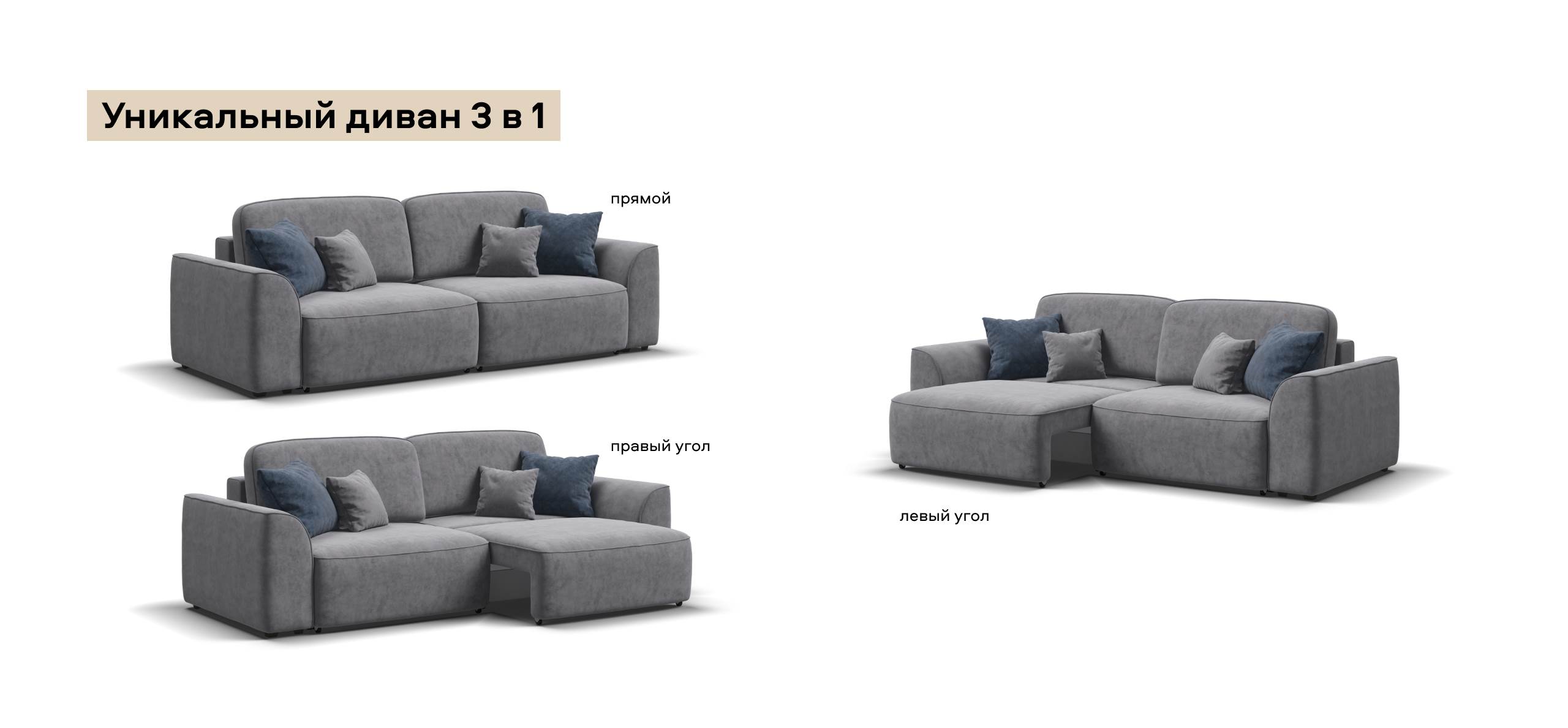 Комфортная посадка, скругленные линии, объемные подушки - диван, который наполнит ваш дом уютом и комфортом. Каждое посадочное место можно выдвинуть вперед и получить угловой диван, на котором с комфортом разместится небольшая компания. А в разложенном виде диван превращается в комфортное спальное место.
