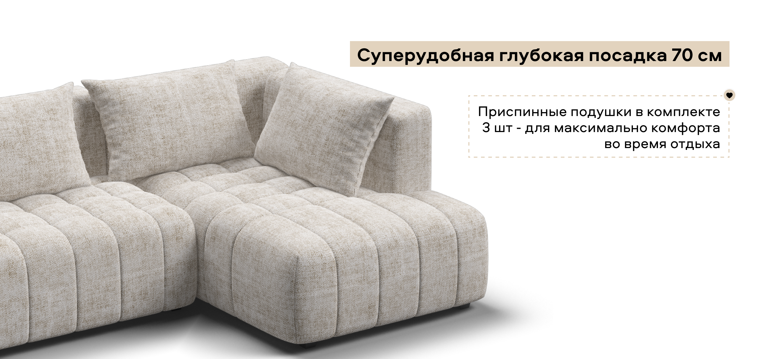 Глубокое сиденье и независимые пружины в основании словно созданы для полного расслабления, а мягкие спинки обеспечивают комфорт без лишних подушек.