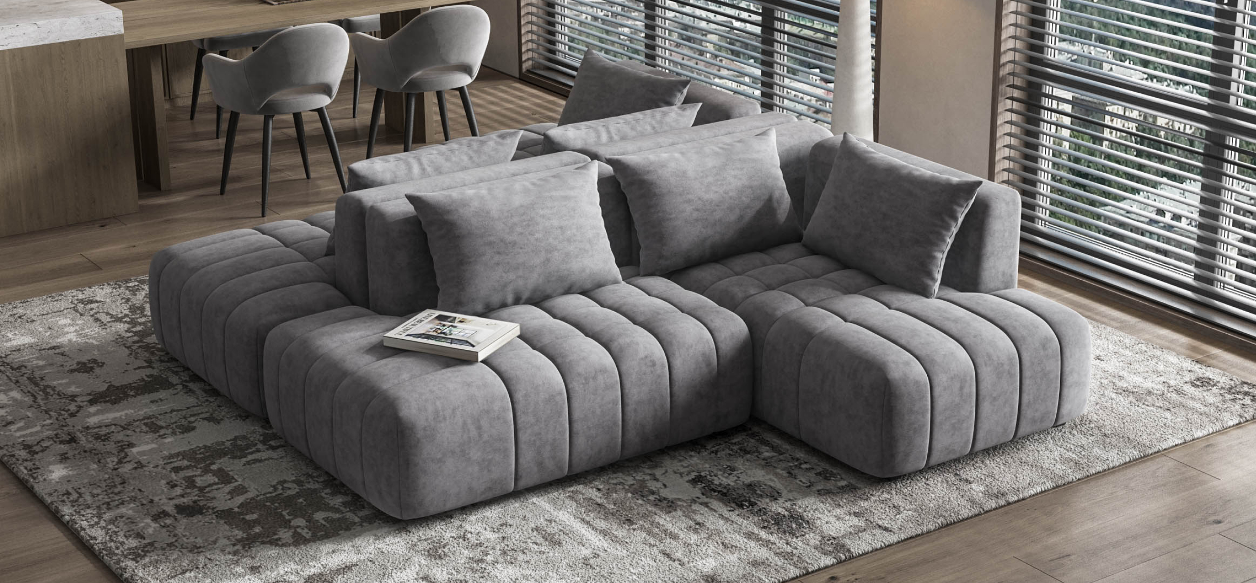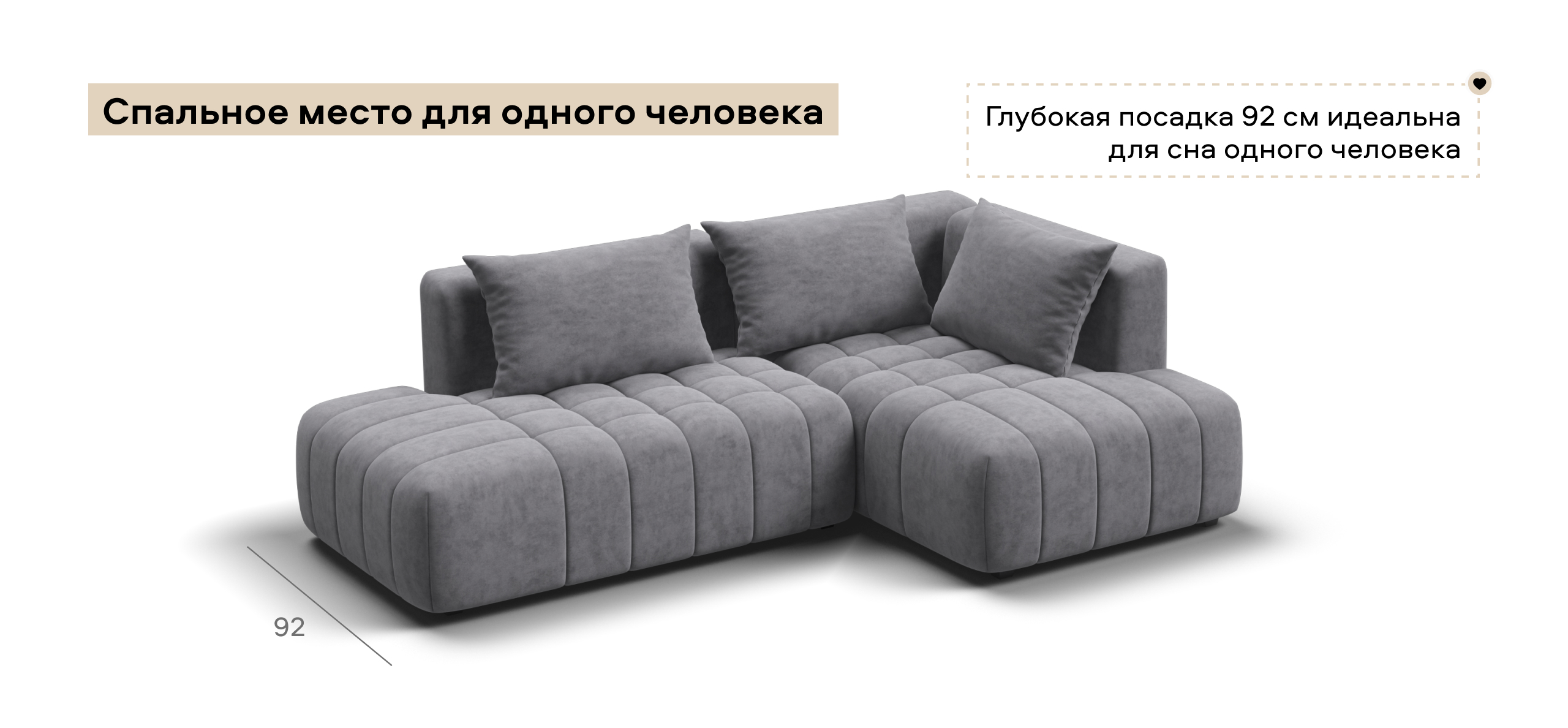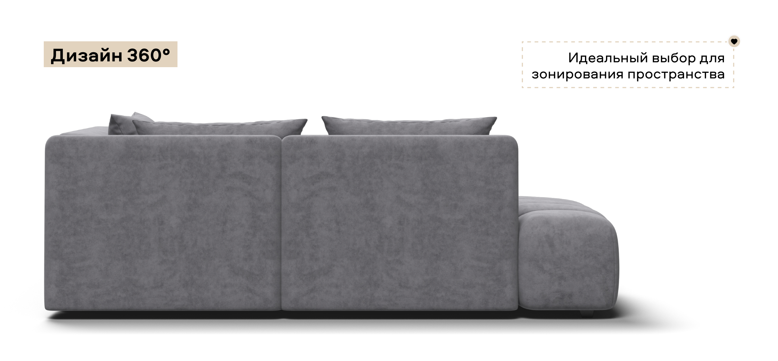 Благодаря инновационной системе креплений и быстросъёмным элементам Вы с лёгкостью можете поменять конфигурацию и адаптировать диван под новое пространство.
