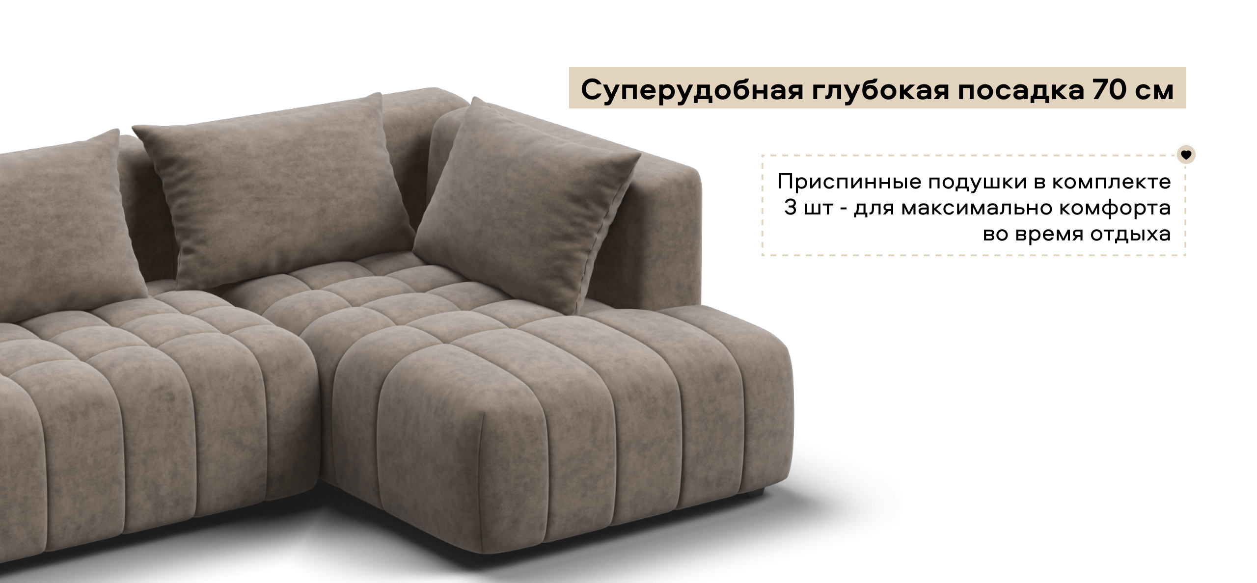 Глубокое сиденье и независимые пружины в основании словно созданы для полного расслабления, а мягкие спинки обеспечивают комфорт без лишних подушек.