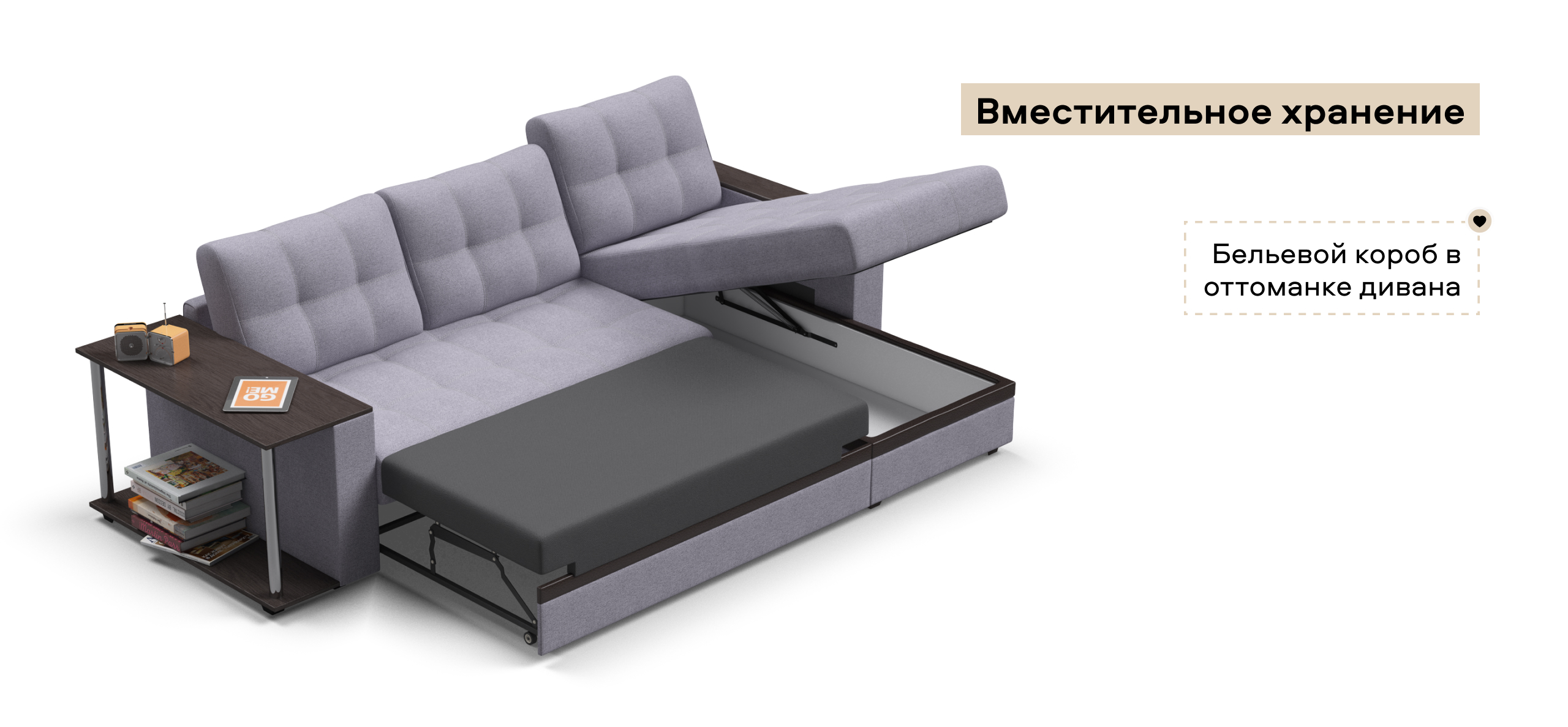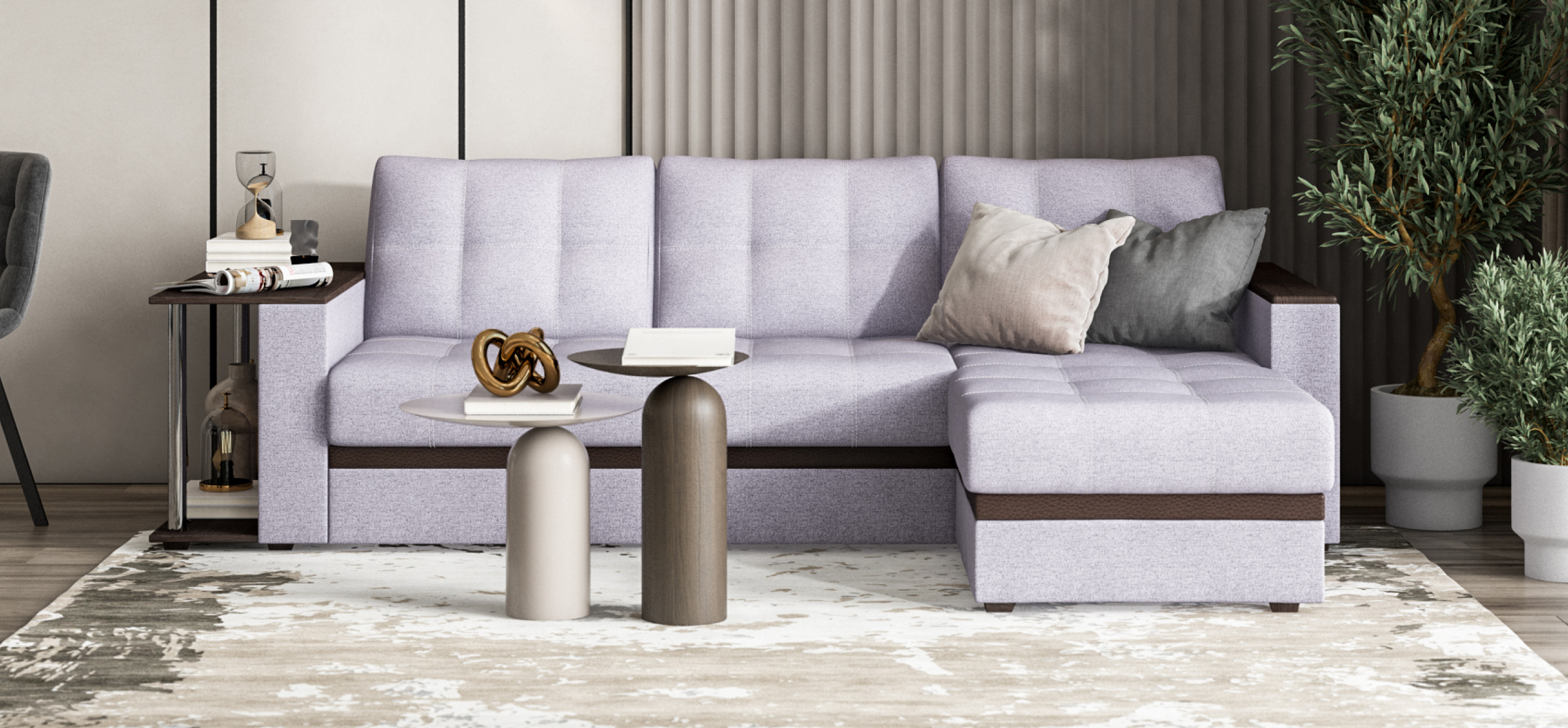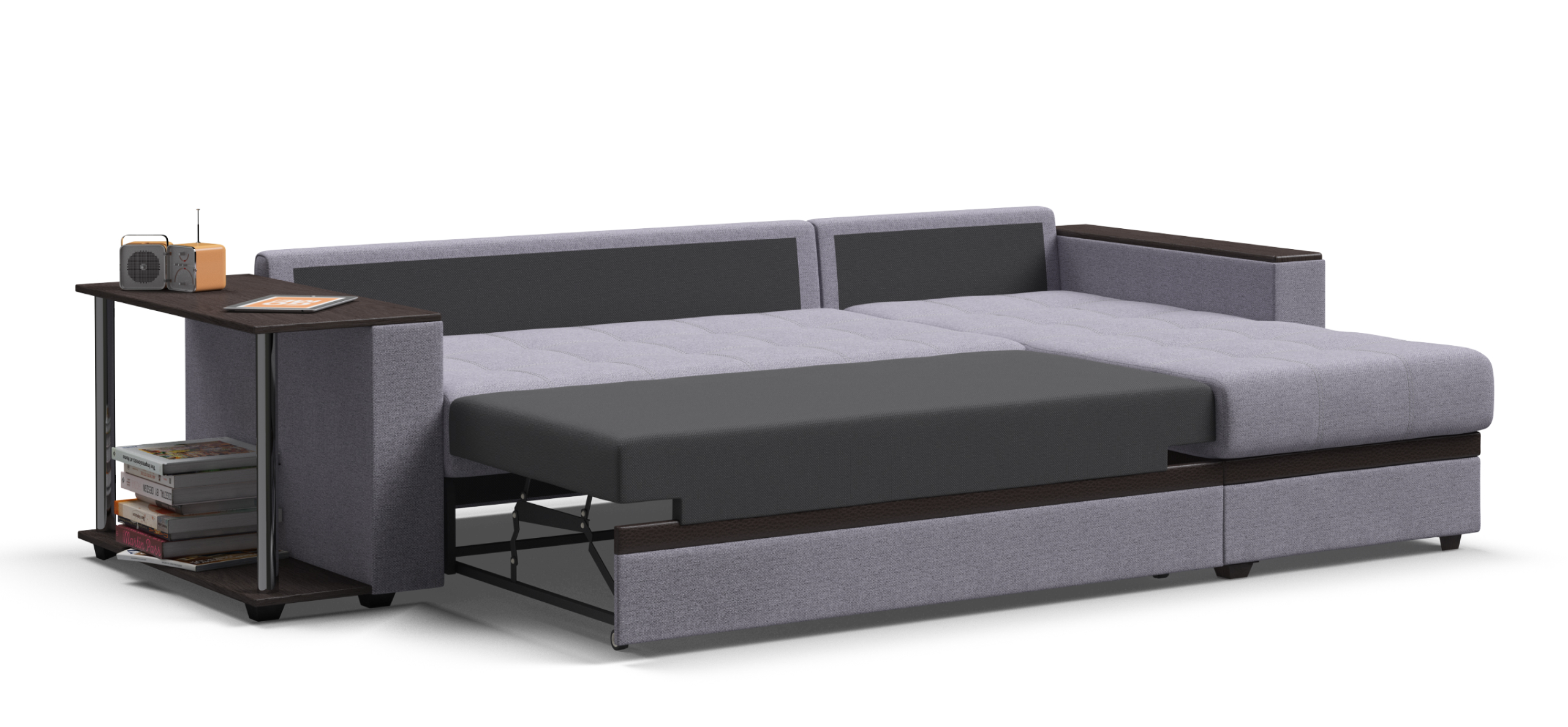Модель оснащена прорезиненными колесиками, что обеспечит вам легкость раскладки и обезопасит от повреждений напольное покрытие. Не прилагая особых усилий, диван легко превратить в комфортную двуспальную кровать с идеально ровным спальным местом.