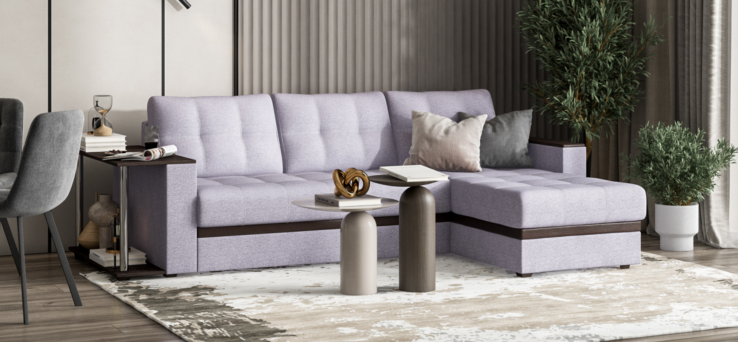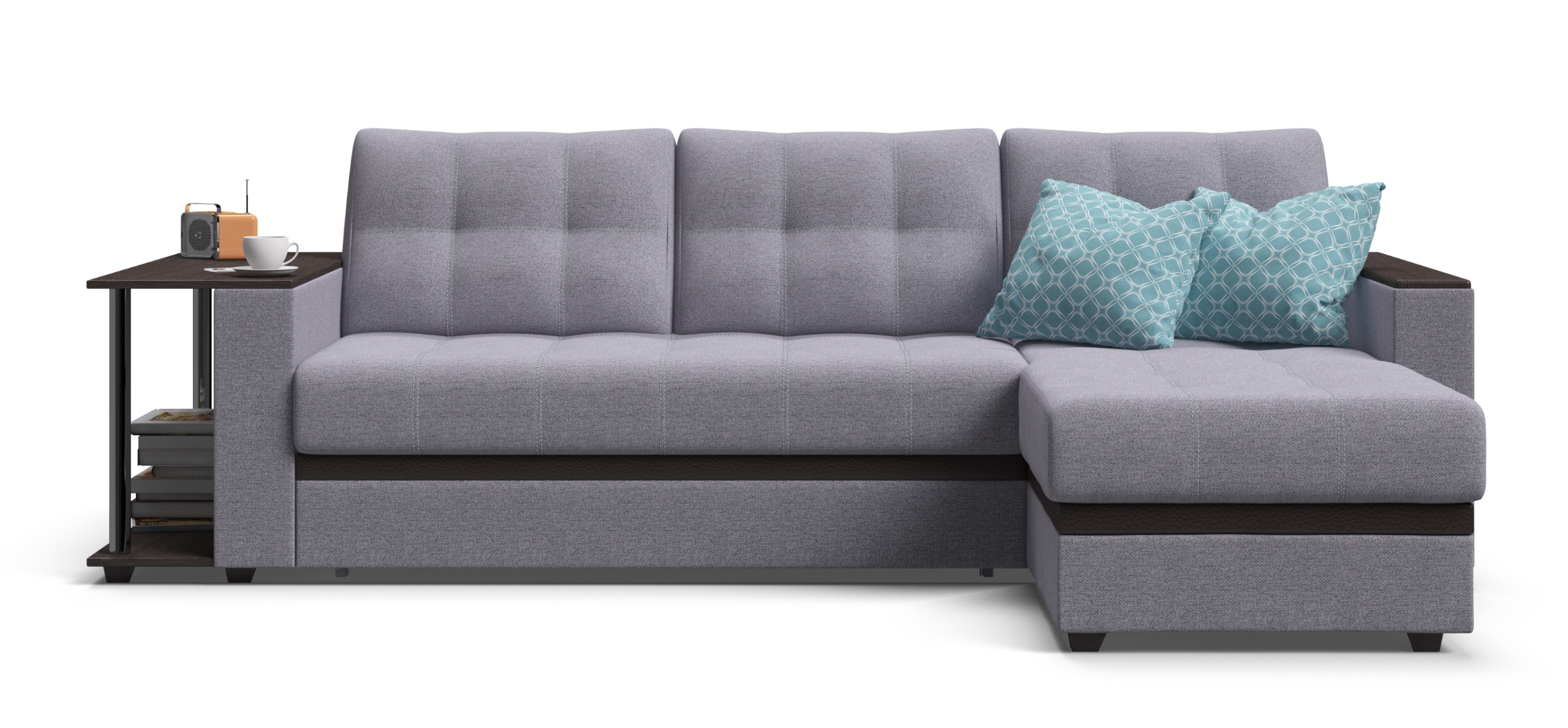 Угловой диван Атланта, благодаря своему элегантному и практичному дизайну, замечательно дополнит интерьер Вашей гостиной. Надежный и простой механизм трансформации Дельфин идеален для постоянного использования и выдерживает большие нагрузки.
