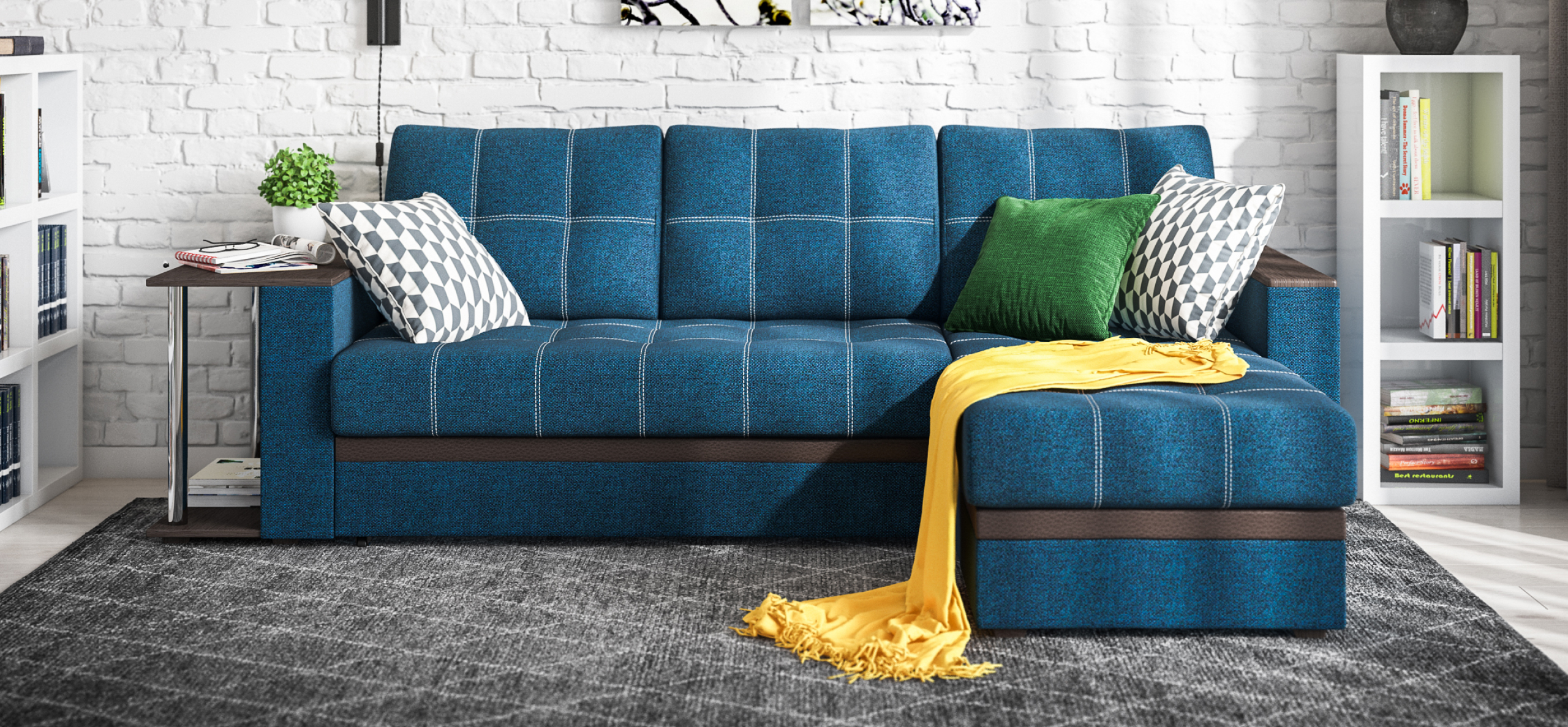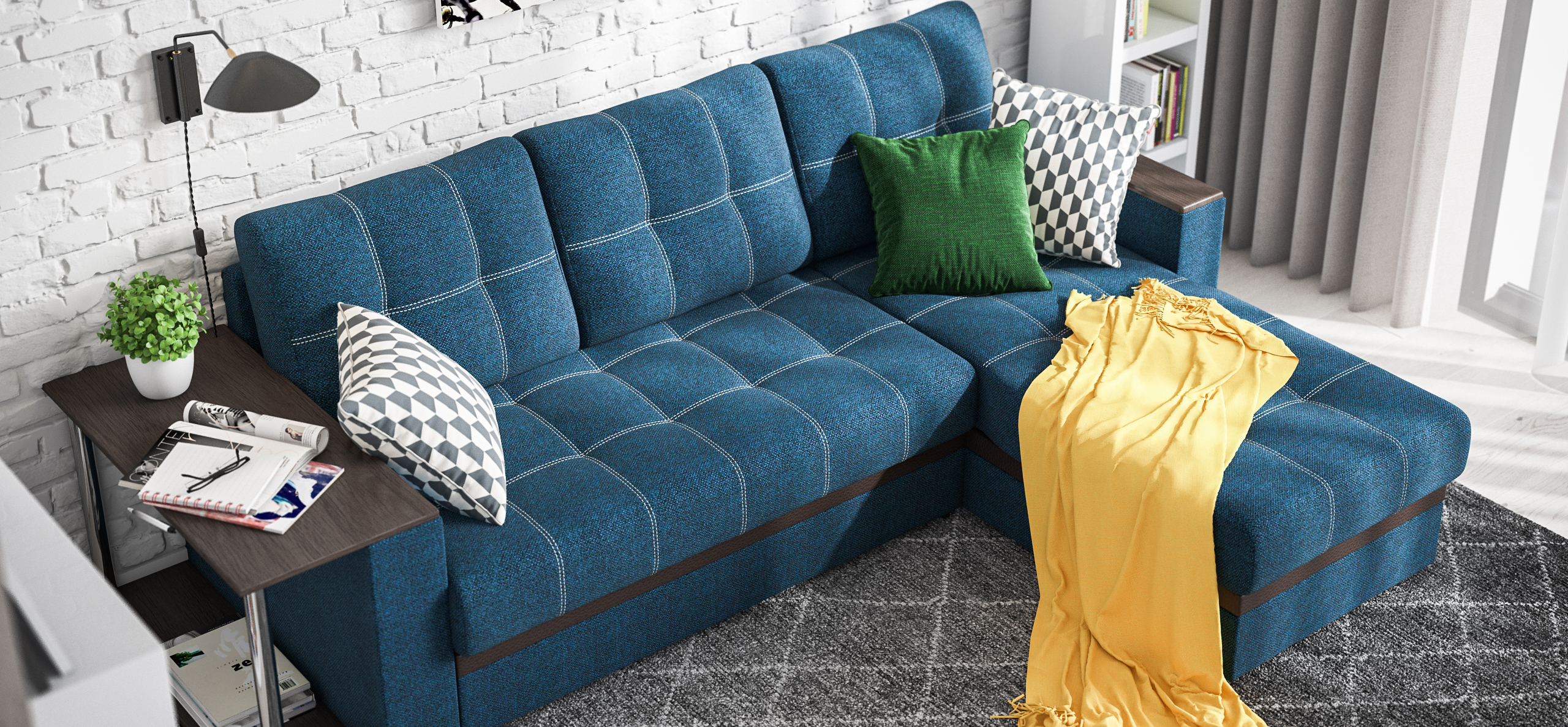 Угловой диван Атланта, благодаря своему элегантному и практичному дизайну, замечательно дополнит интерьер Вашей гостиной. Надежный и простой механизм трансформации Дельфин идеален для постоянного использования и выдерживает большие нагрузки.