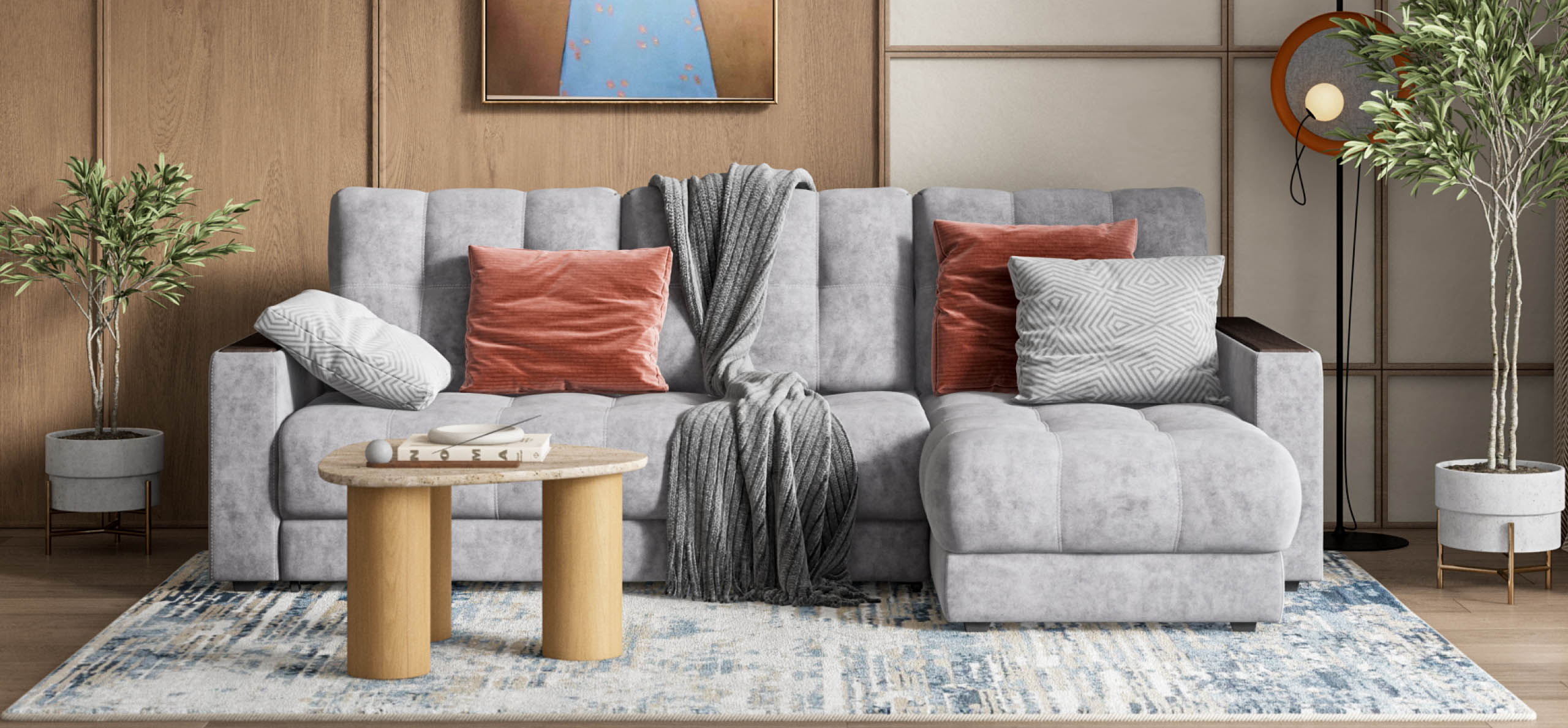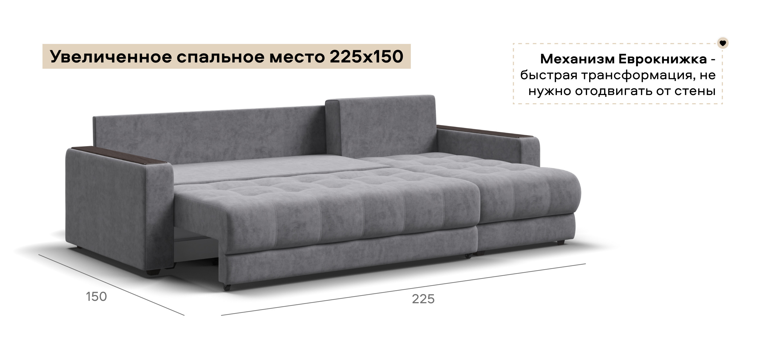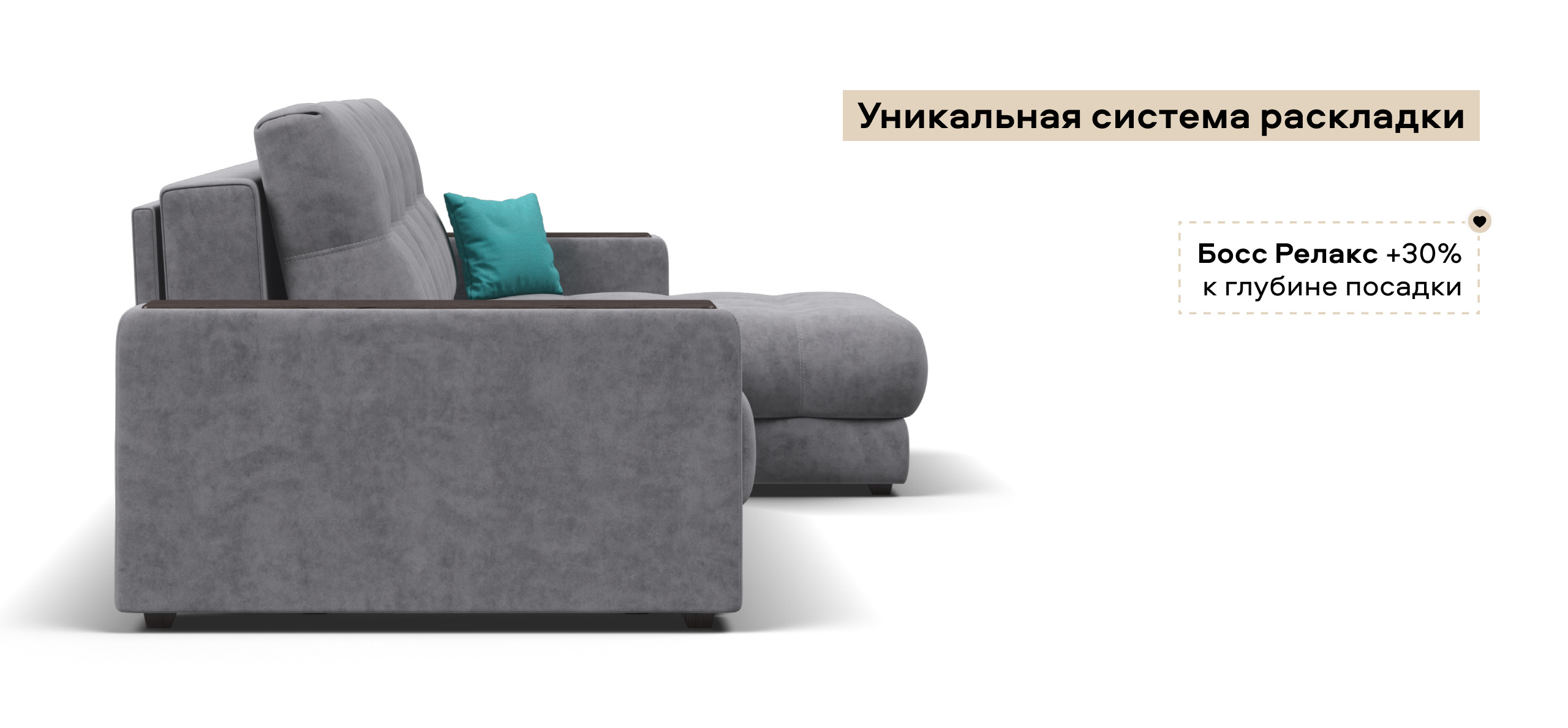 Продуманный до мелочей диван Босс сочетает в себе мягкие ткани, надежный каркас, качественное наполнение матраса и быструю сборку за 1 минуту без инструментов - ощутите комфорт у себя дома!