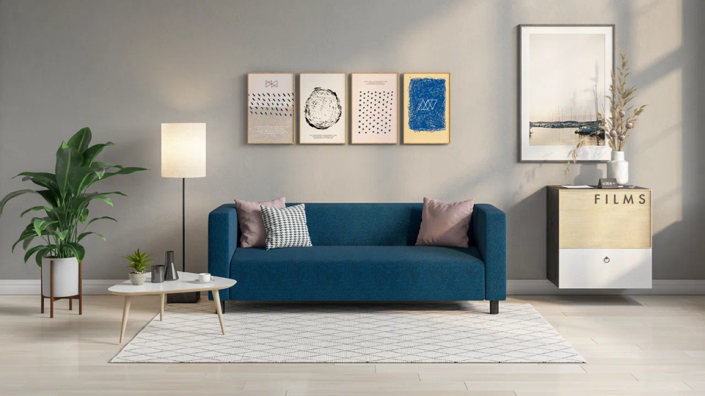 Важно учитывать не только габариты самой мебели, но и площадь вашей гостиной. Измерьте пространство, где будет стоять предмет, и предусмотрите достаточно места для прохода и других вещей — журнального столика, ковра, комода. Также обратите внимание на высоту потолков: в комнате с низким потолком крупная конструкция будет смотреться еще более громоздкой.