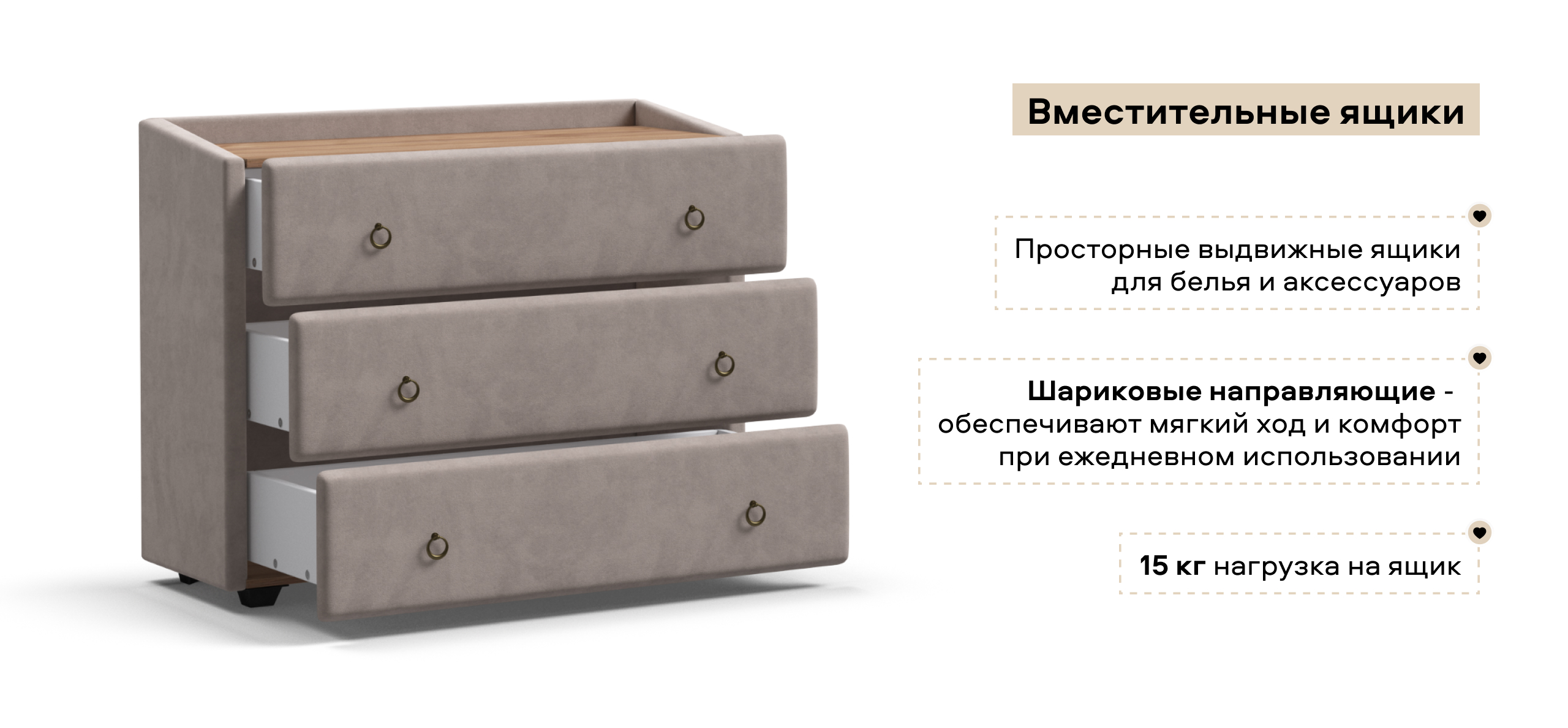 Комод Босс Классик разработан специально для вашего максимального комфорта. Три вместительных ящика из качественных материалов с усиленными направляющими скрытого монтажа для хранения вещей. Продуманный дизайн комода с высоким бортиком защитит ваши ценные вещи от падения, а дизайнерская ручка подчеркнет изысканный вкус владельца. Новые цвета ЛДСП в теплом и холодном оттенке подобраны специально под наши ткани.