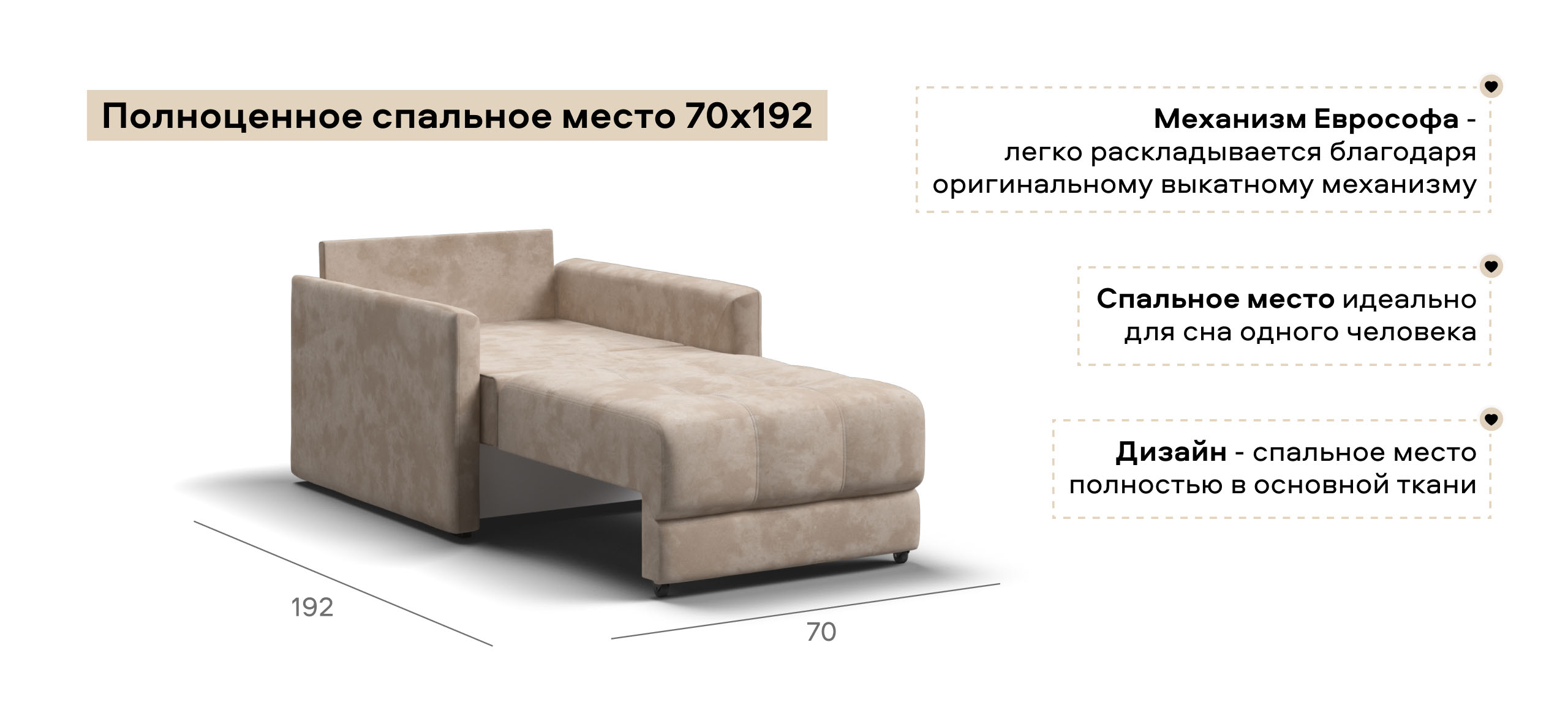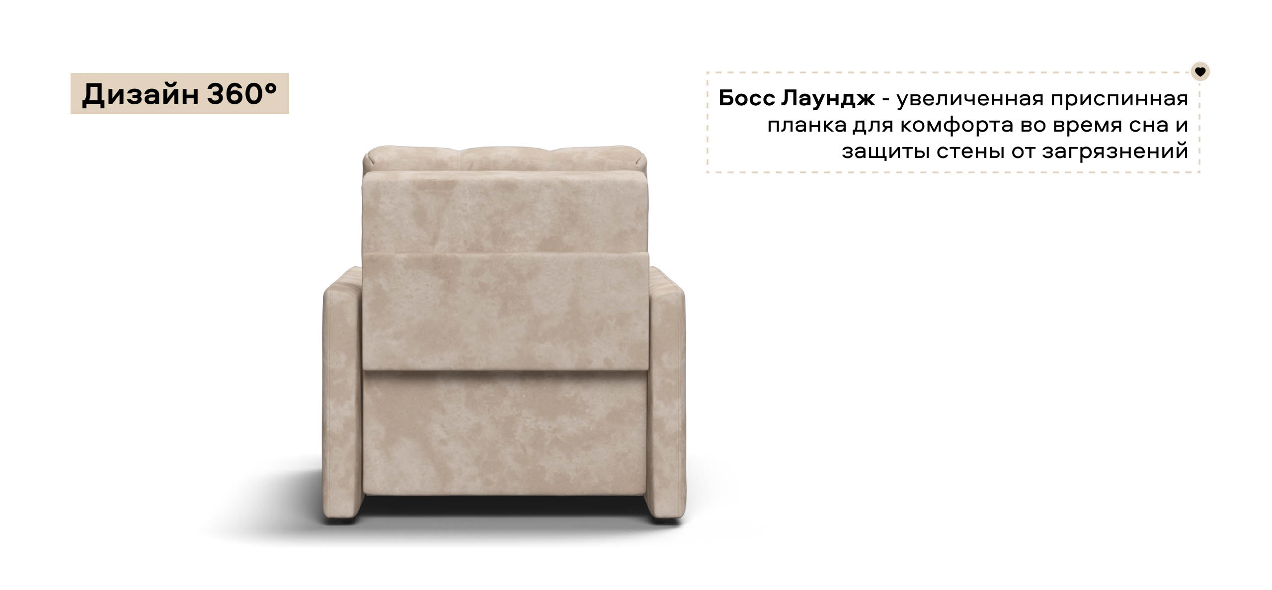 Босс Лофт кресло-кровать - идеальное дополнение к дивану Босс Лофт, отлично сочетает в себе две функции: подарит комфортный отдых днем и даст полноценное спальное место для гостя, который решил остаться у вас на ночь. Тонкие подлокотники идеальны для тех, кто ищет не классическое решение для своего интерьера.