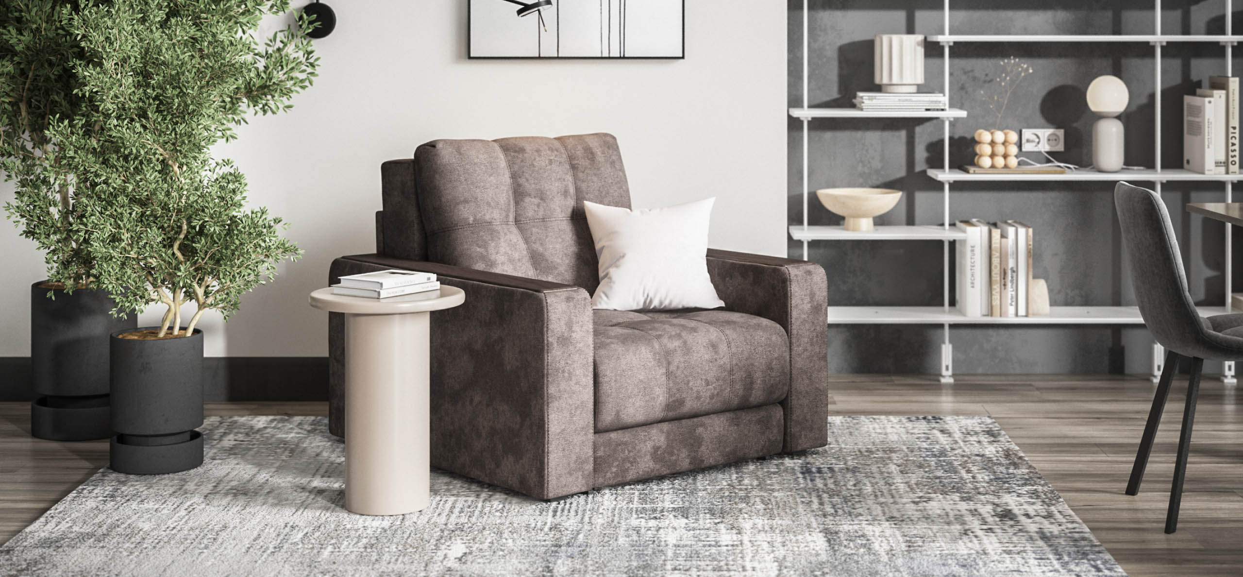 - Босс кресло-кровать велюр Алькантара серый