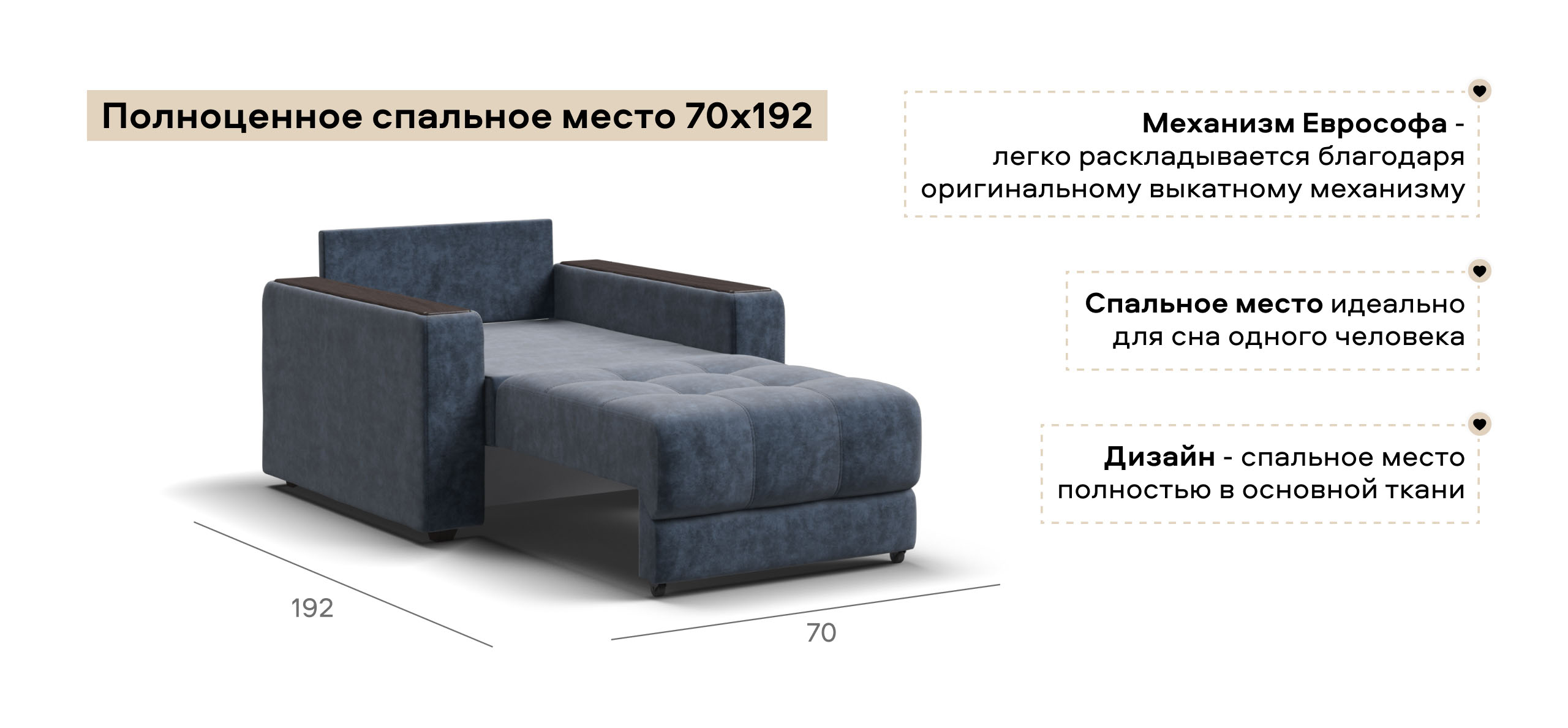 Спальное место полностью выполнено в основной ткани