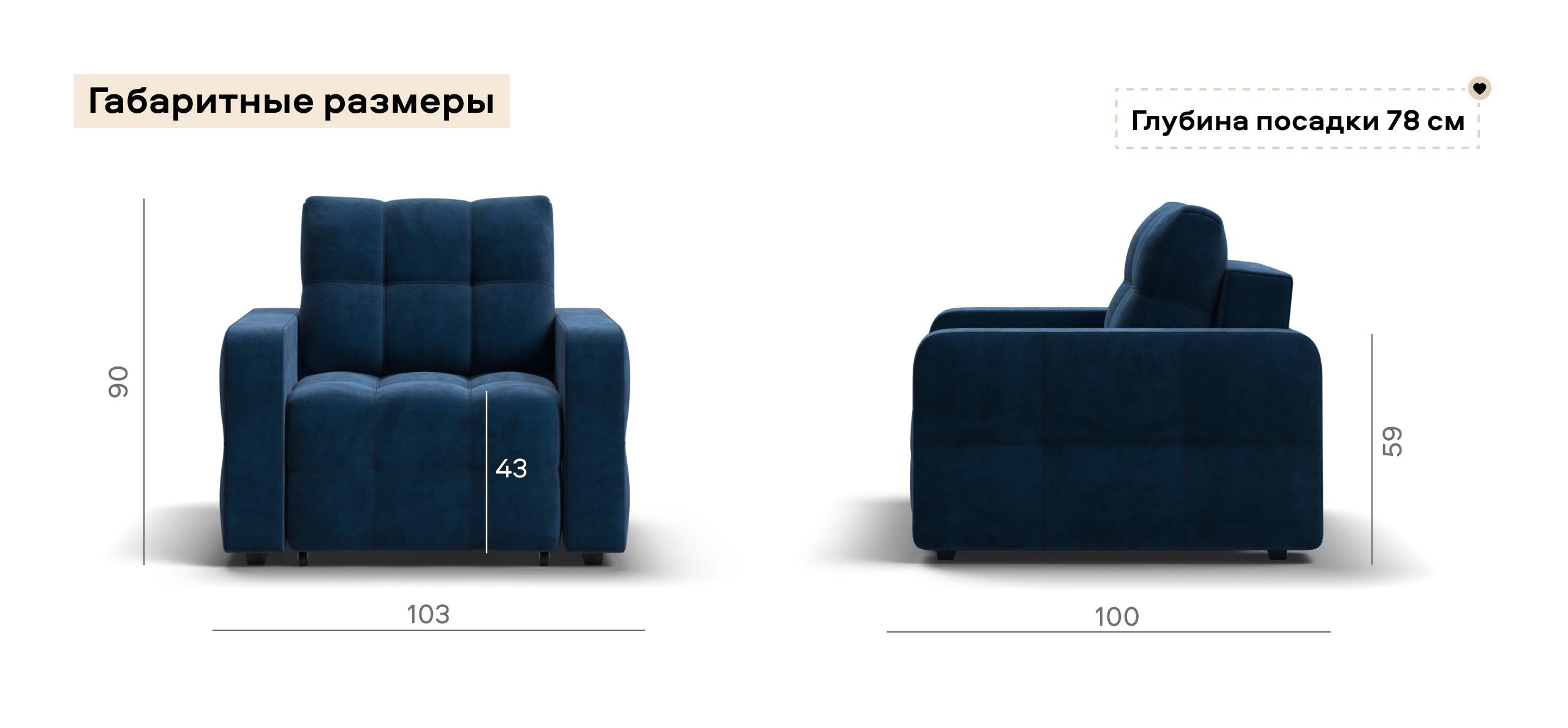 Денди кресло-кровать велюр Монолит синий