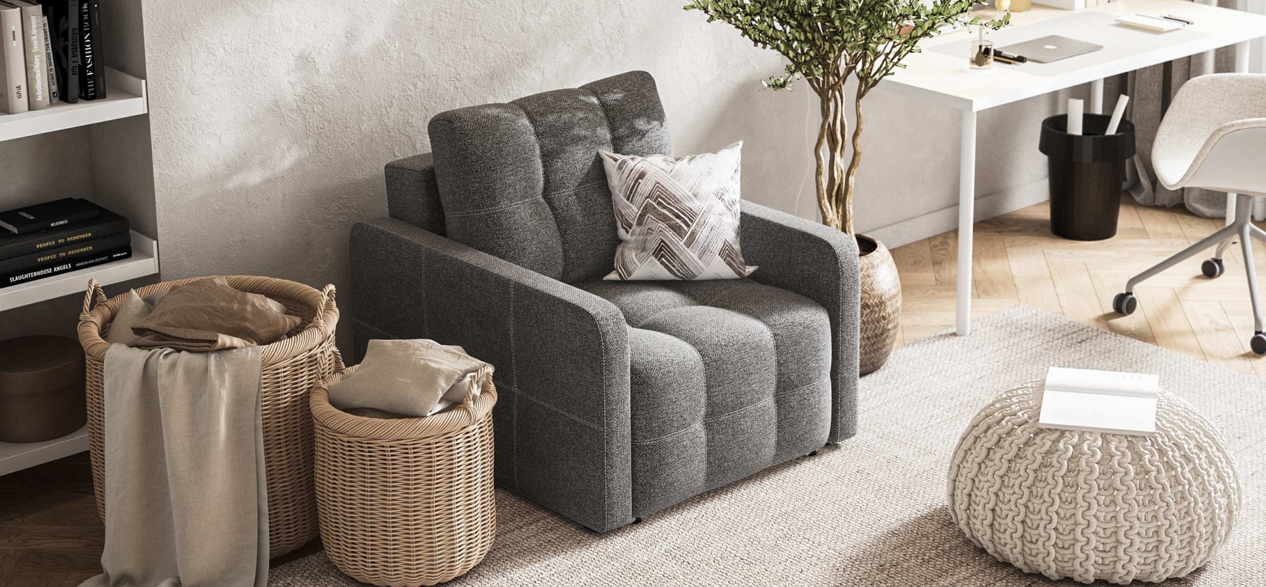 Кресло-кровать Денди Слим Рогожка Мальмо серый