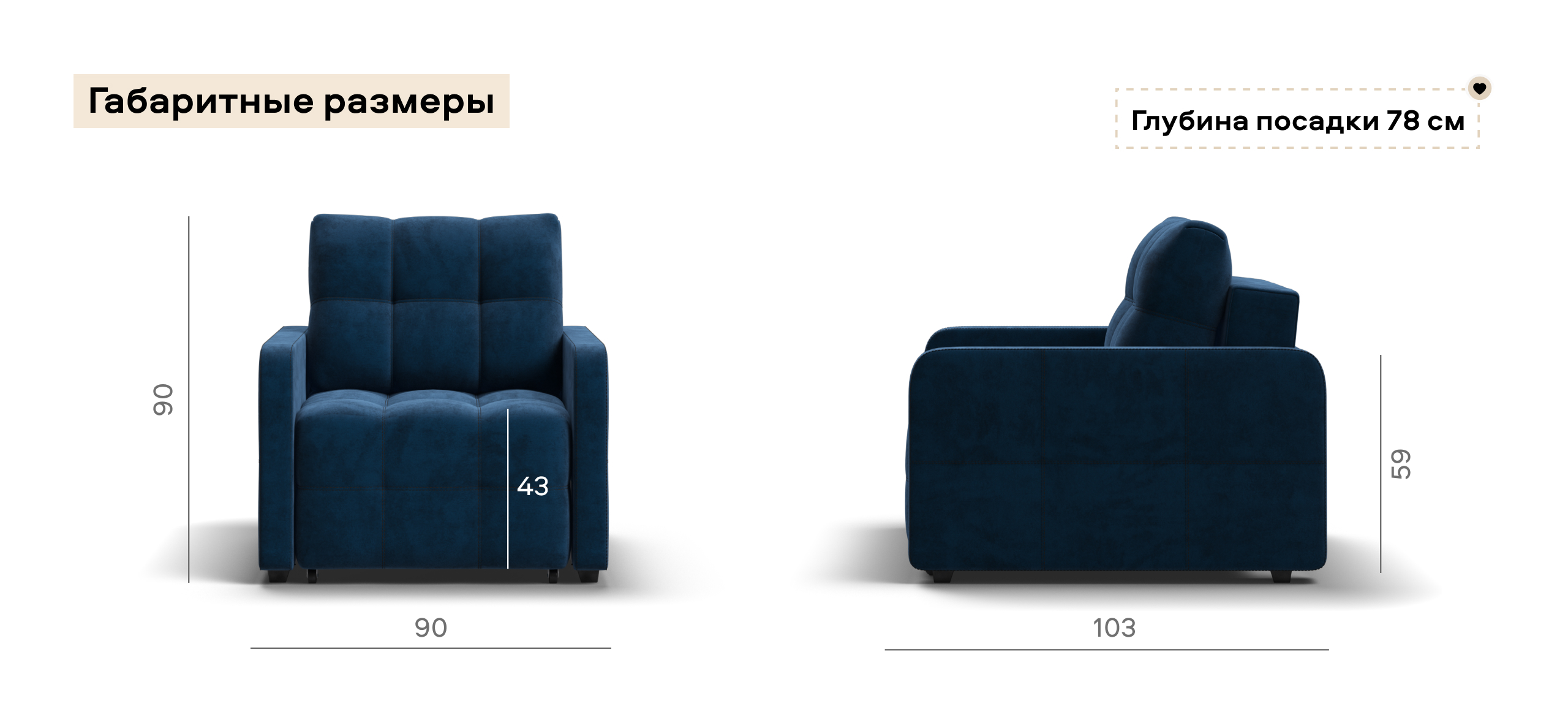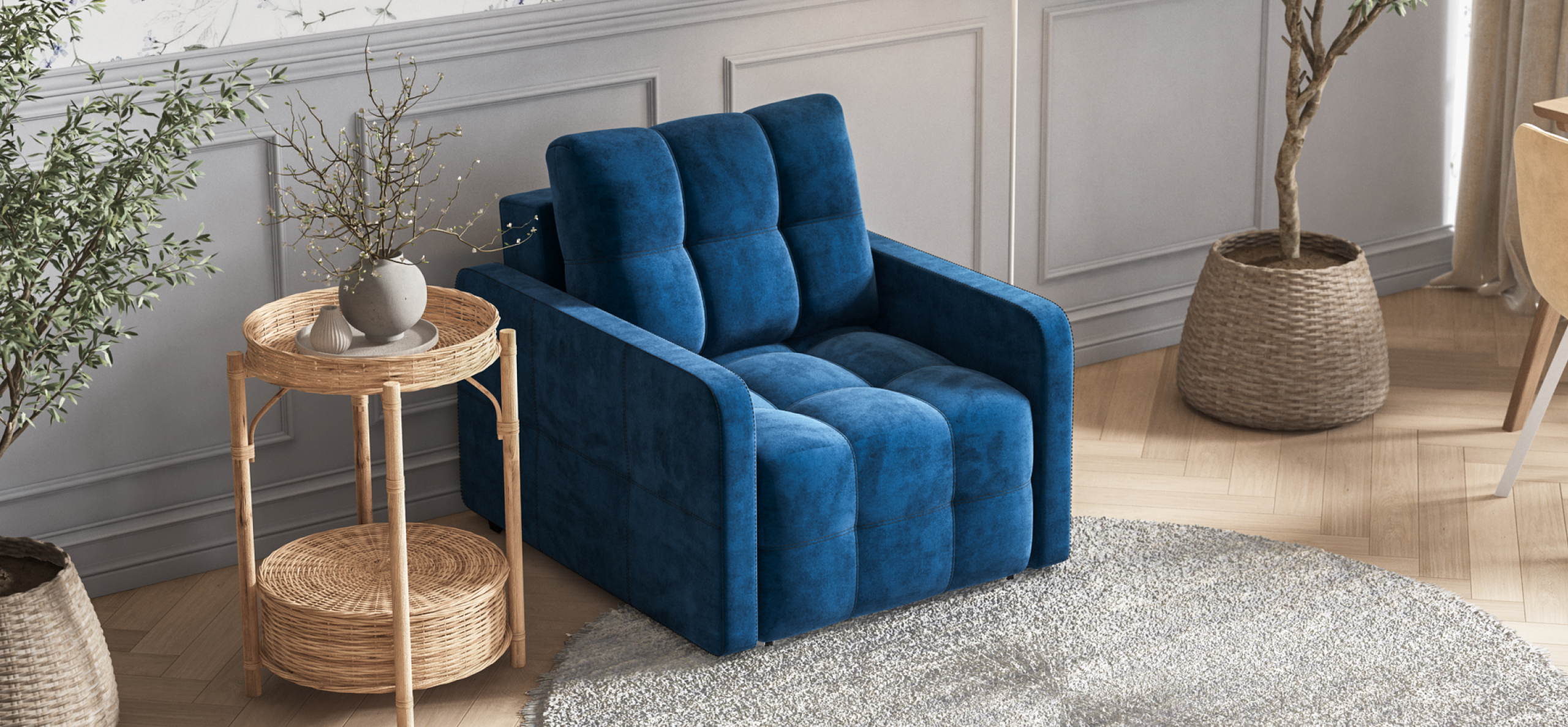 Кресло-кровать Денди Слим велюр Монолит синий