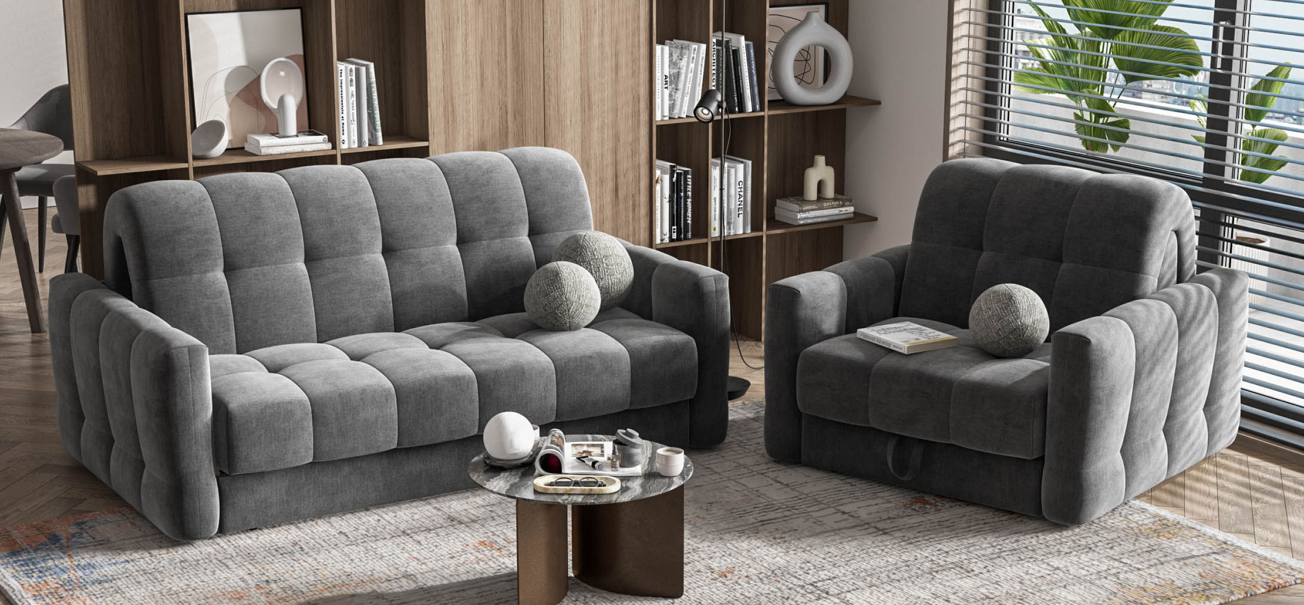 Босс Слип кресло-кровать велюр Монолит серый