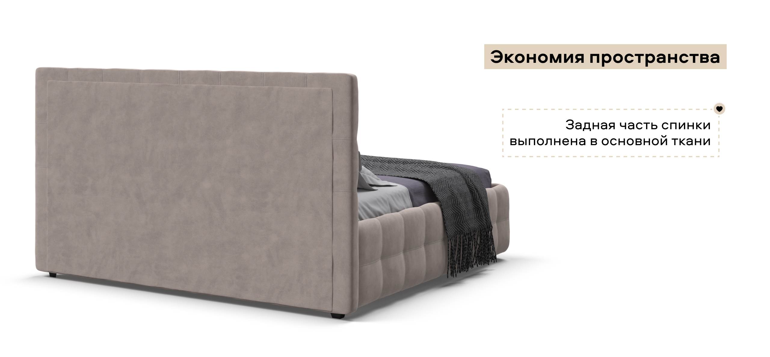 Особое внимание заслуживают газовые лифты SpaceLift, изготовленные из авиационного алюминия. Они обеспечивают лёгкое и плавное поднятие матраса, что делает доступ к отсеку для хранения быстрым и удобным. Дизайн 360 предполагает, что задняя часть спинки кровати также выполнена из основной ткани, что позволяет размещать кровать не только у стены, но и в центре комнаты, сохраняя при этом её эстетическую привлекательность.
