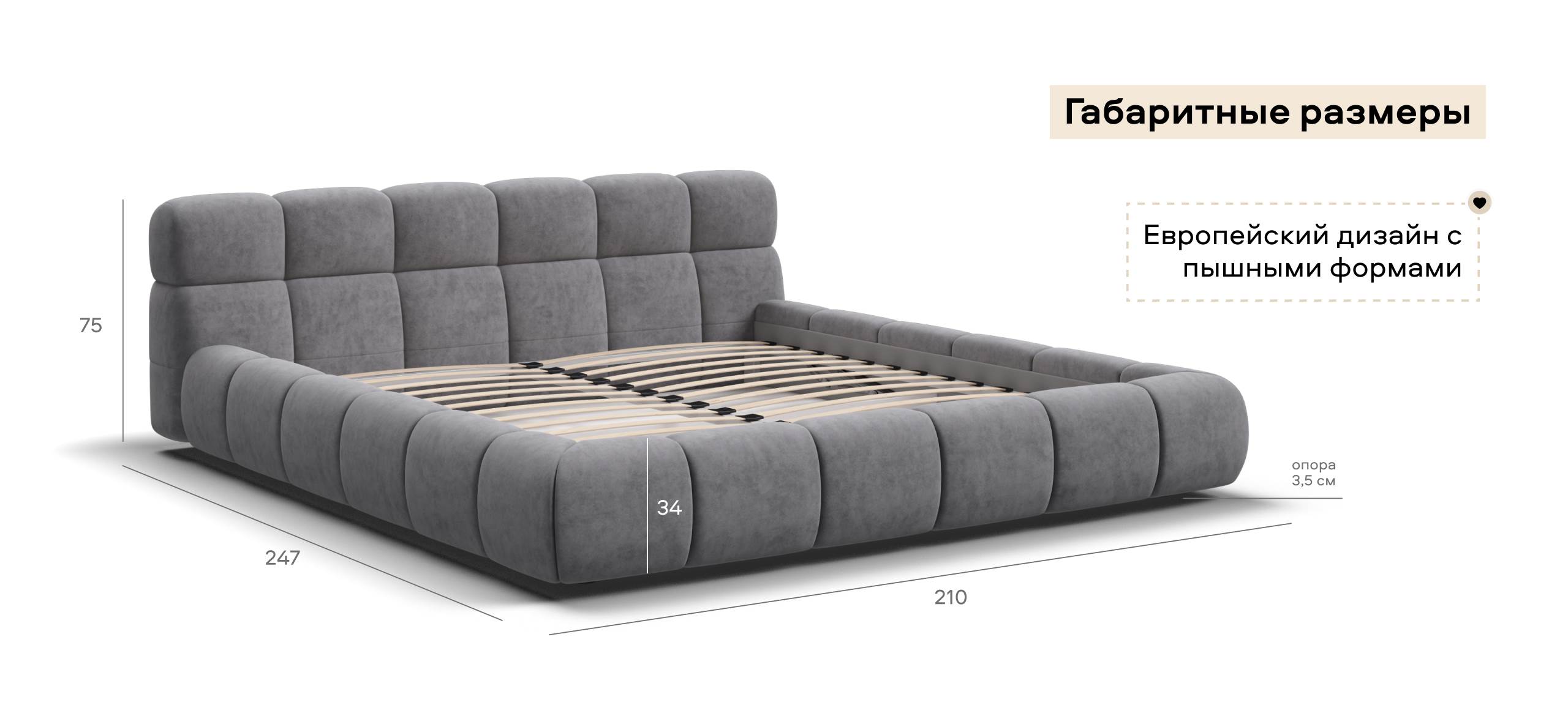 Босс Дрим — это воплощение итальянского дизайна, известного своим вниманием к деталям и утонченным стилем. Пышные формы кровати и рельефное мягкое изголовье создают атмосферу роскоши и уюта, делая вашу спальню центром изысканности и элегантности. Каждая линия каркаса, четко продуманная и аккуратно выполненная, придает конструкции эффект пышности и мягкости.