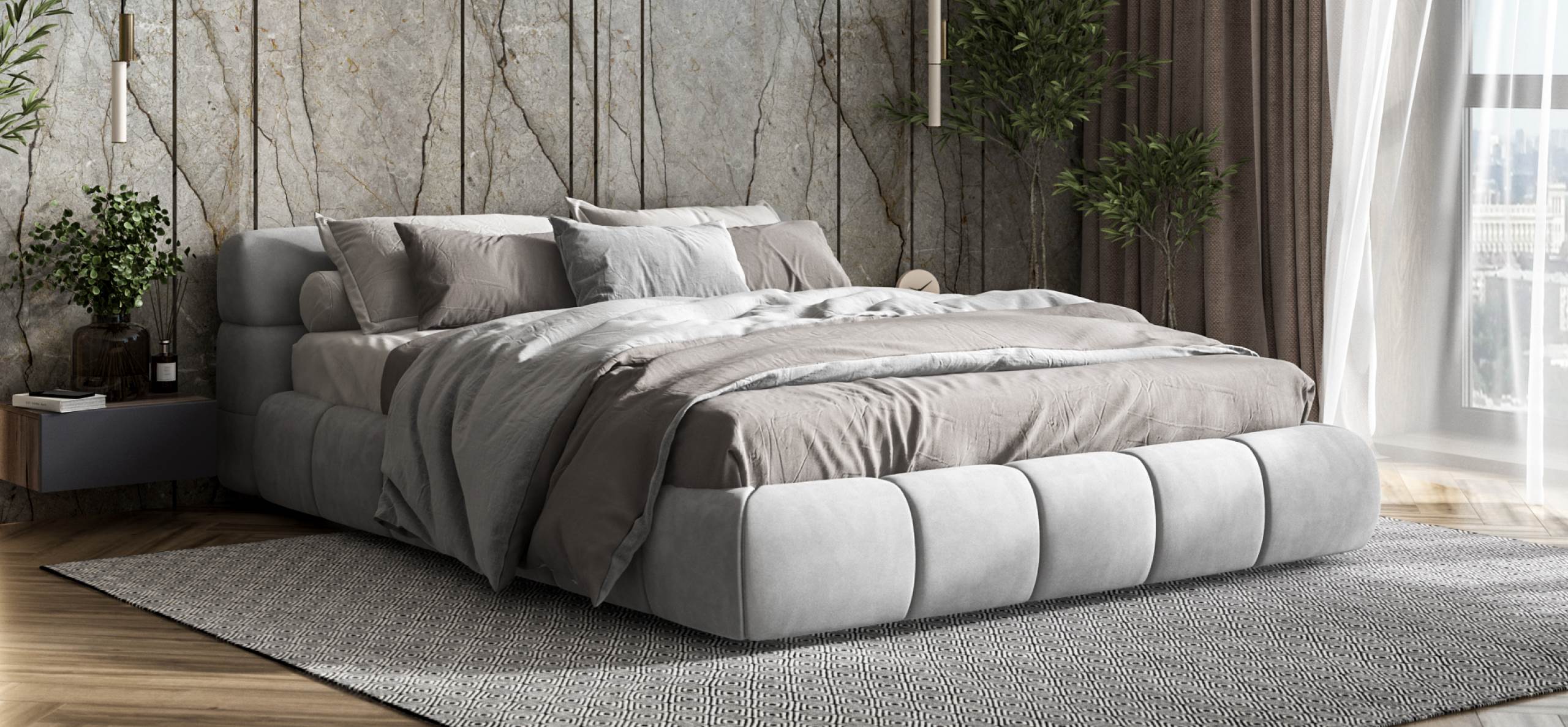 Рельефное мягкое изголовье позволит комфортно расположиться перед сном и почитать интересную книгу или посмотреть сериал на планшете.
