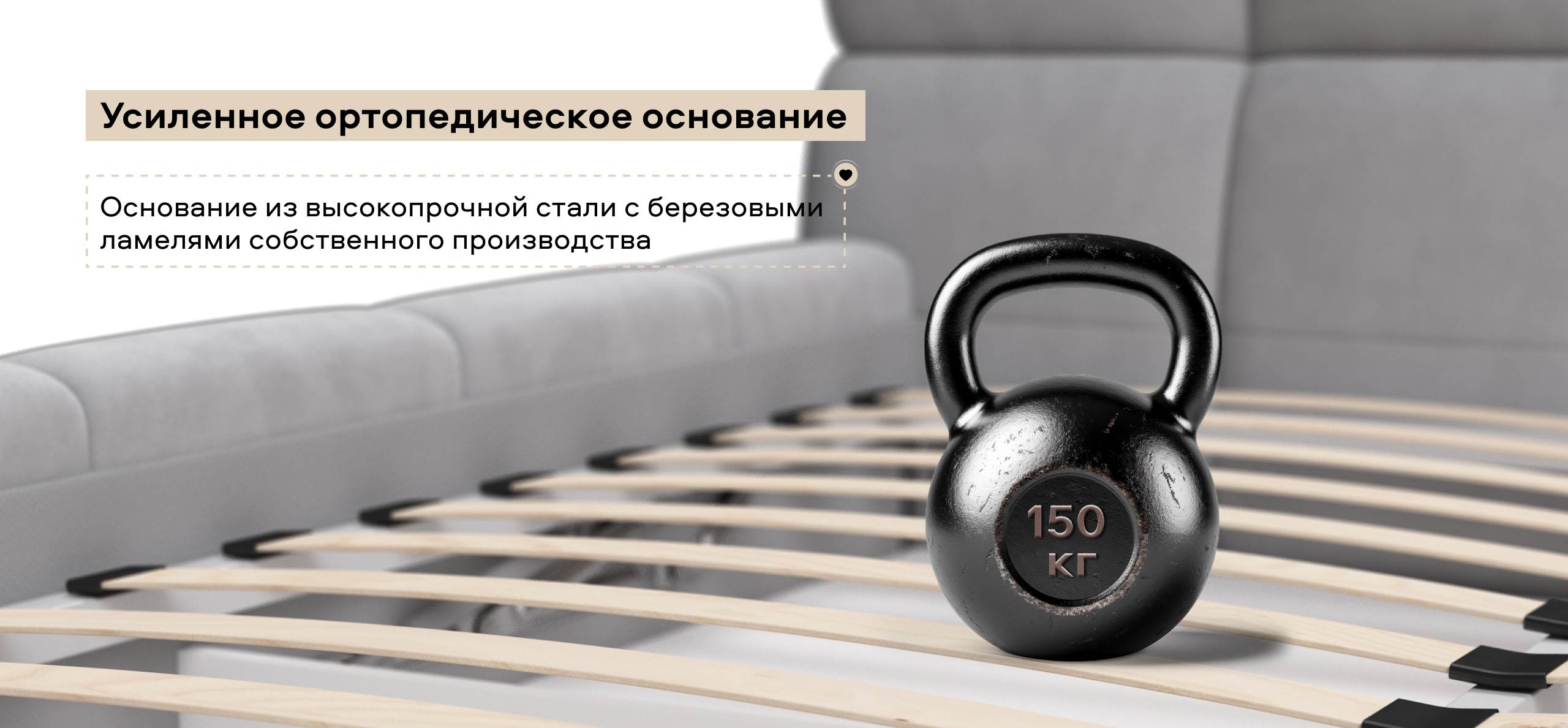 Усиленное ортопедическое основание из прочного металлического каркаса и березовых ламелей позволяют принять вам правильную позу во время сна.