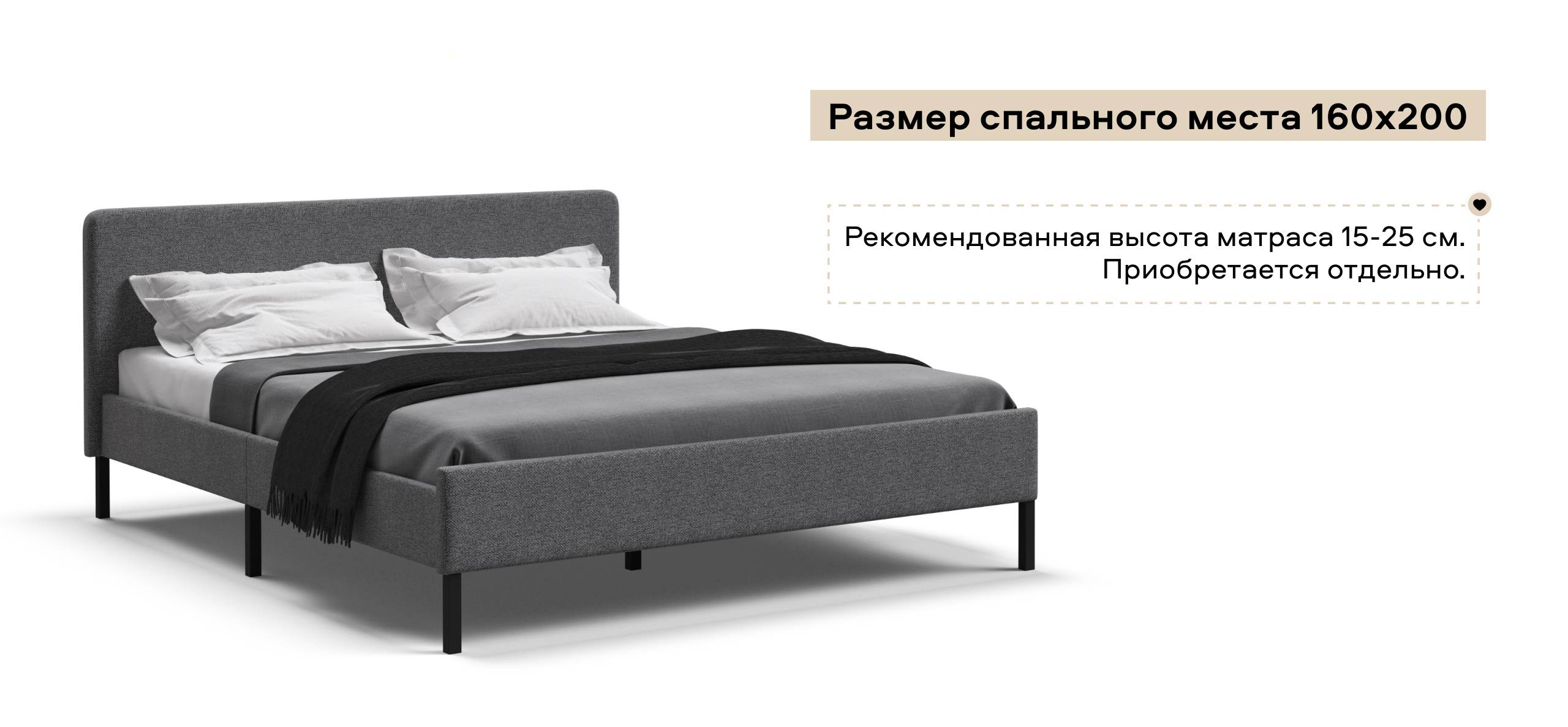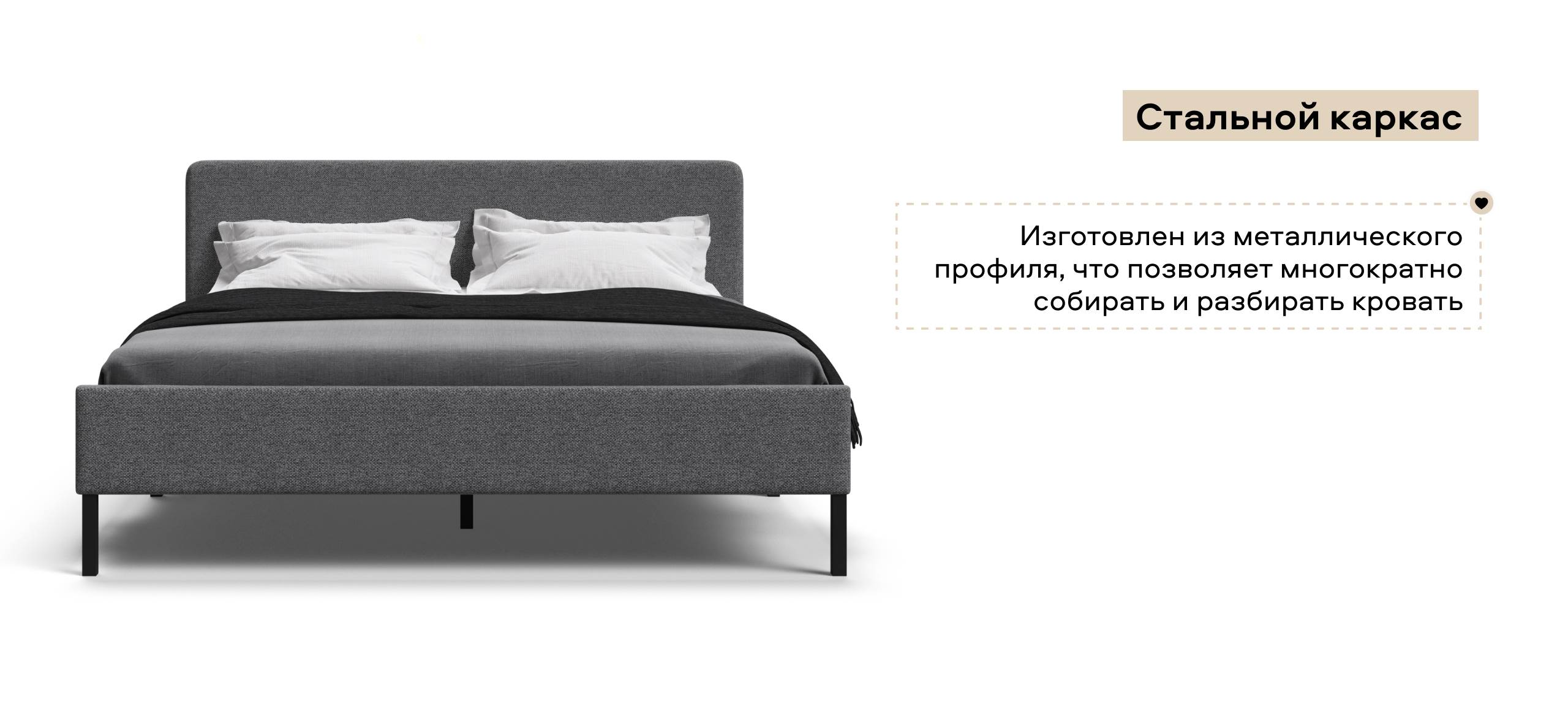 Уна Кровать 160*200Рогожка Мальмо серый, Чёрный