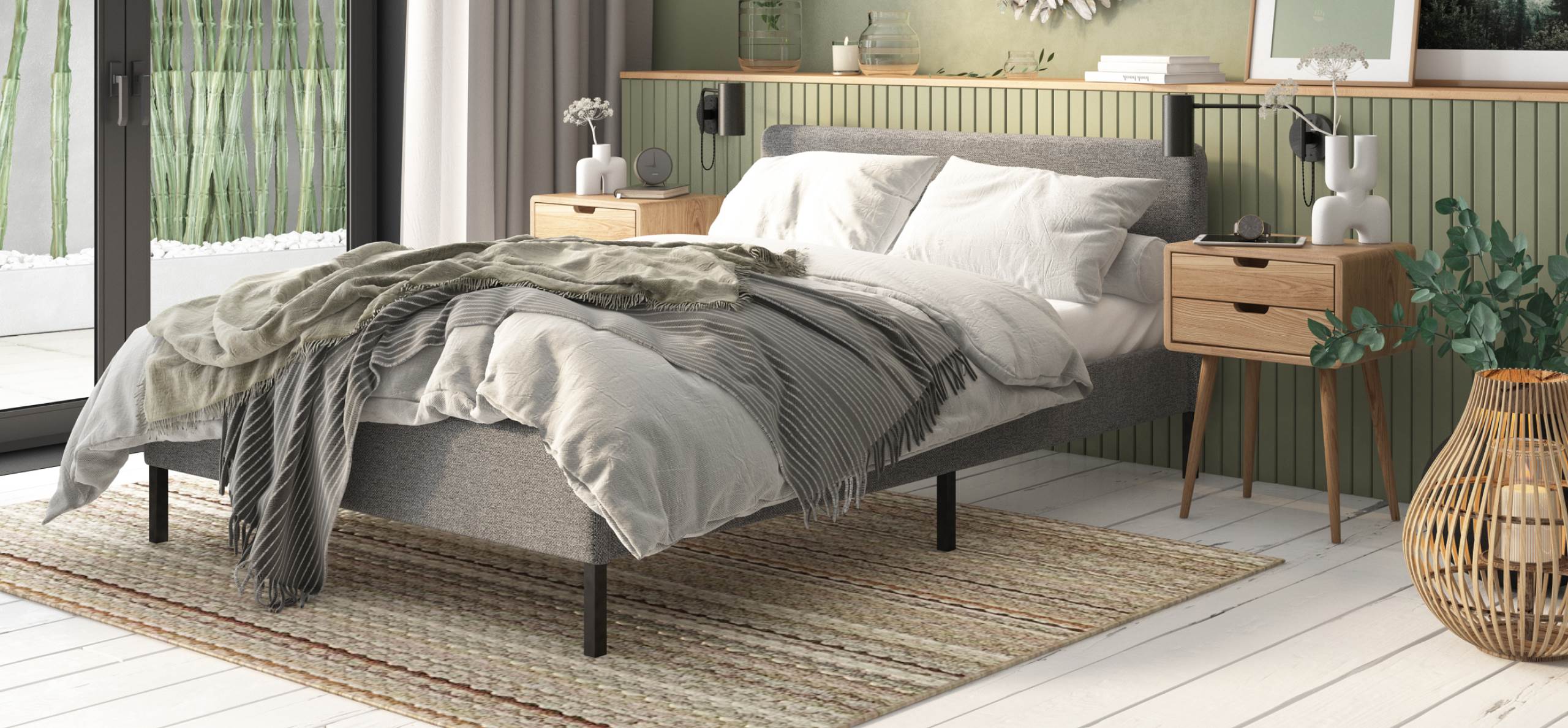 Кровать УНА в скандинавском стиле на высоких ножках прекрасно впишется в любой современный интерьер. Каркас кровати изготовлен из металлического профиля, позволяющего ей выдерживать большие нагрузки, и придающего ей долговечность. Кровать не ломается и не деформируется даже при интенсивной эксплуатации. Мягкая тканевая обивка придает кровати уютный вид. На изголовье можно удобно опереться, чтобы почитать перед сном. Пространство под кроватью можно без труда почистить пылесосом.