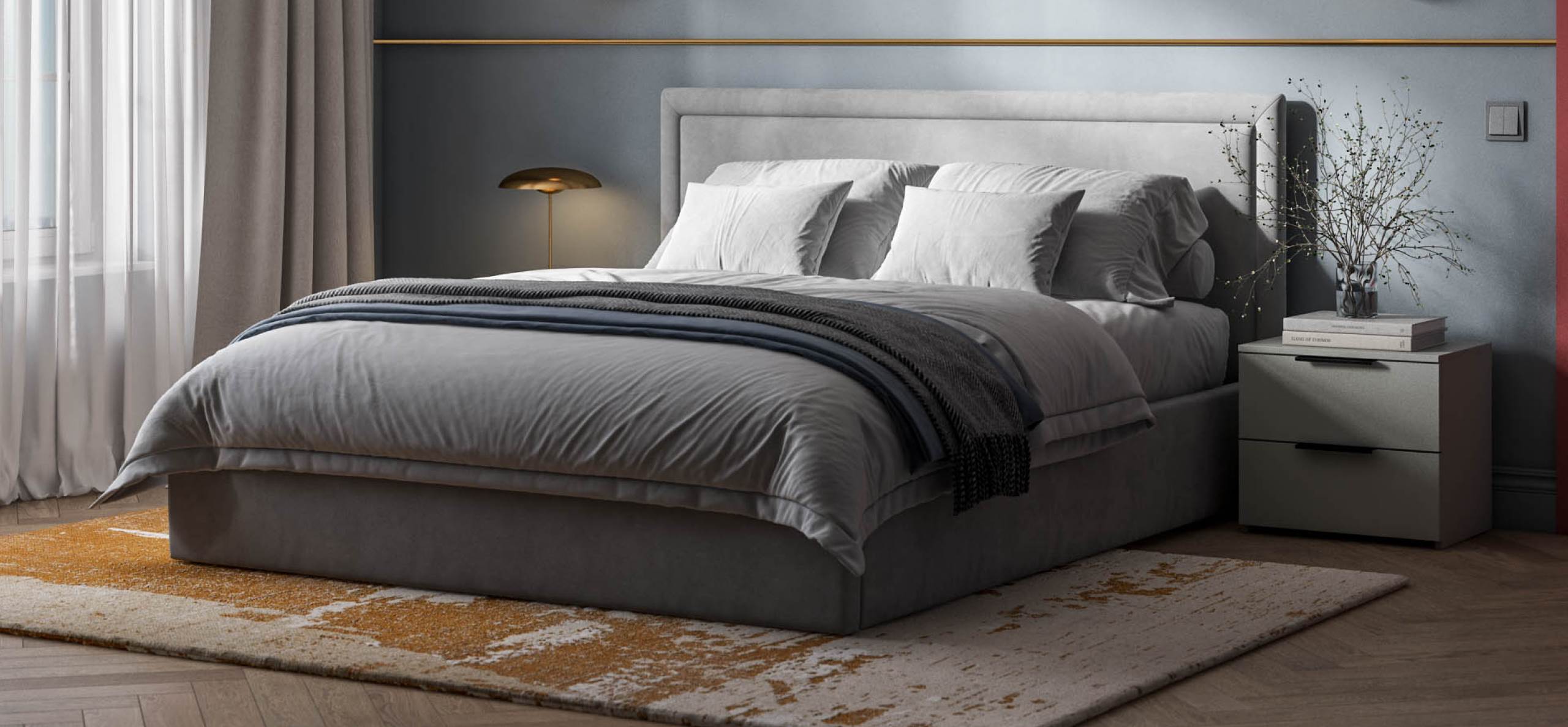 Эта кровать создана для тех, кто ценит тишину, уют и безупречный порядок в пространстве. Она будто обнимает вас мягкими линиями и ненавязчивым, благородным силуэтом. Высокое изголовье с деликатным объемом приглашает устроиться поудобнее — почитать книгу, посмотреть сериал или просто отдохнуть, ощущая приятную упругость за спиной.