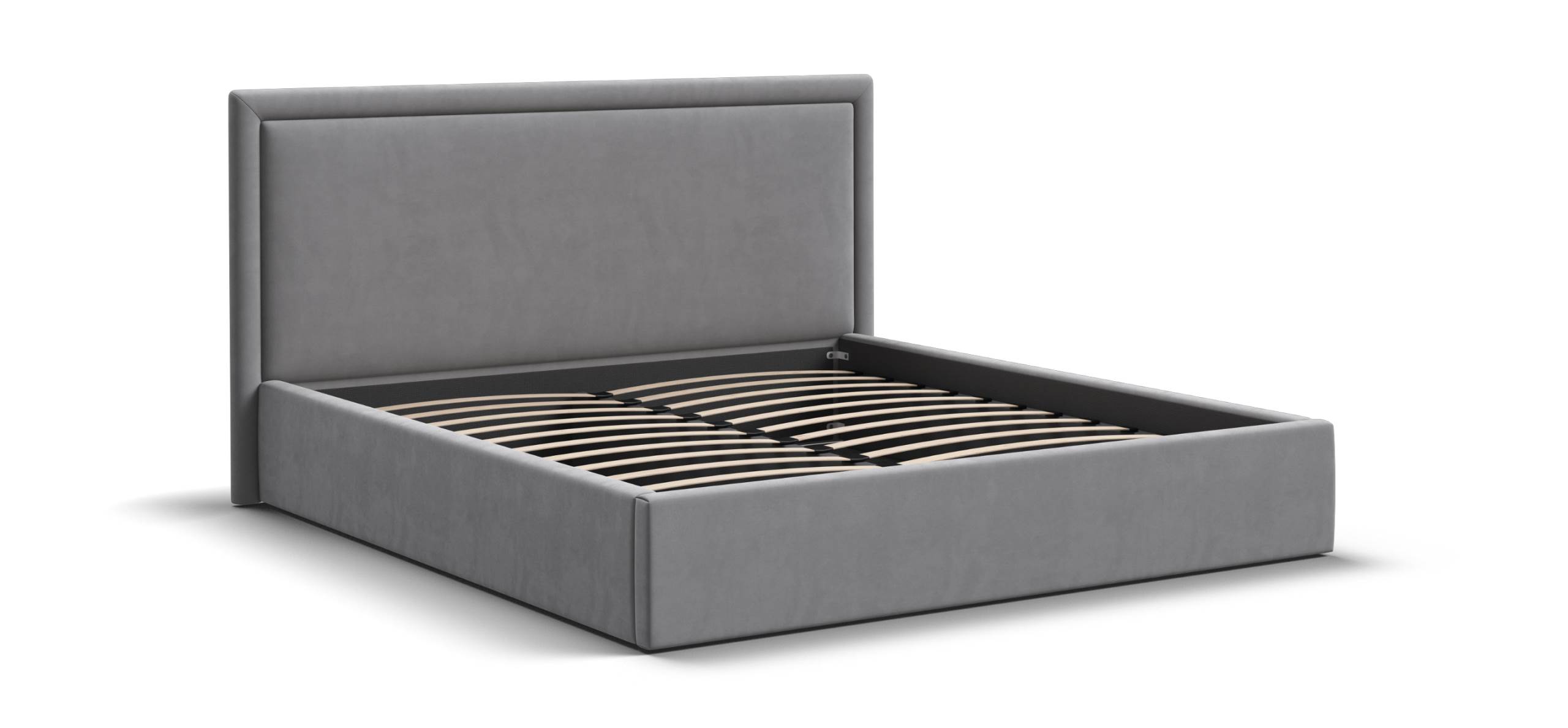 В основе конструкции — ортопедическое основание с березовыми ламелями, которое поддерживает правильное положение позвоночника и помогает полноценно расслабиться во время сна. Мягкое изголовье с наполнителем из формованной пены обеспечивает комфортную опору для спины, сохраняя упругость и форму на протяжении всего срока эксплуатации.