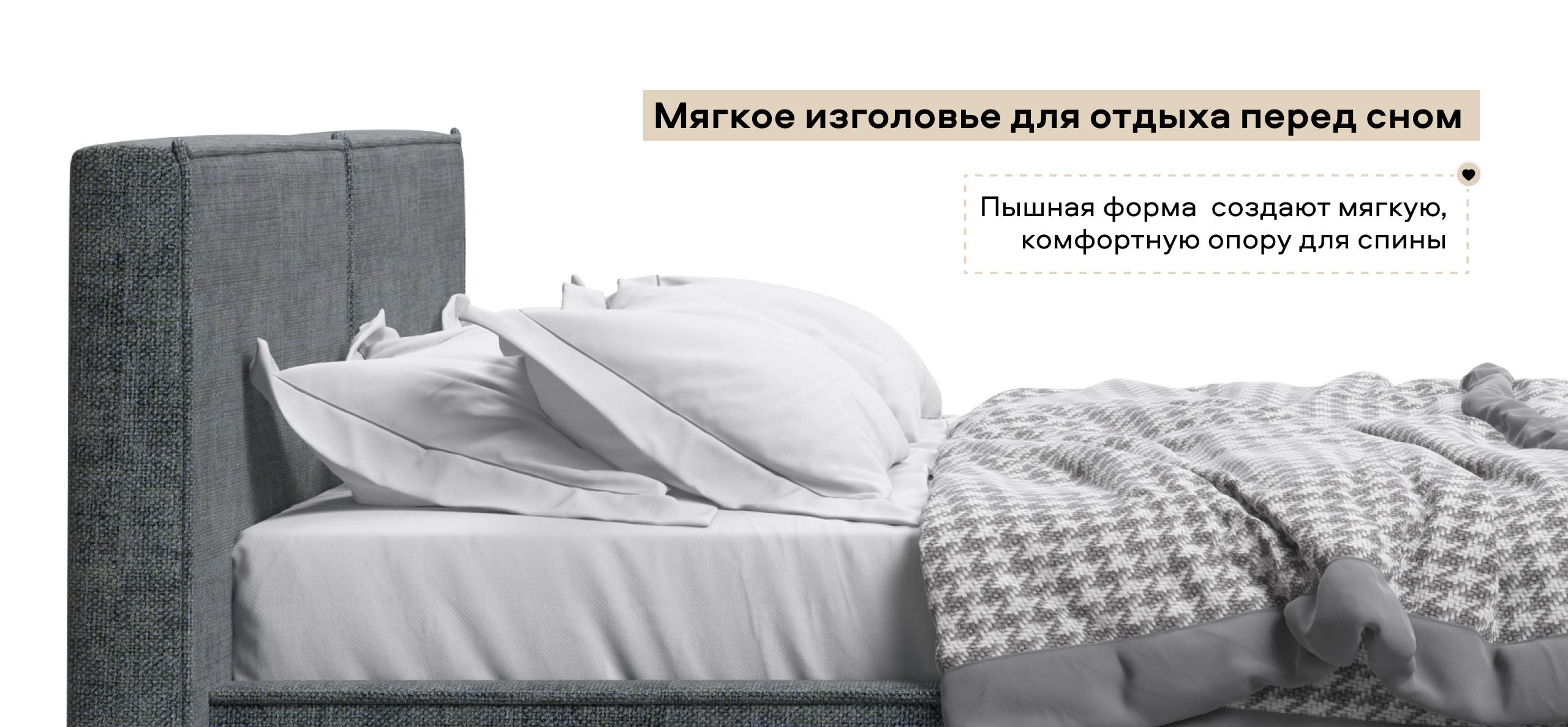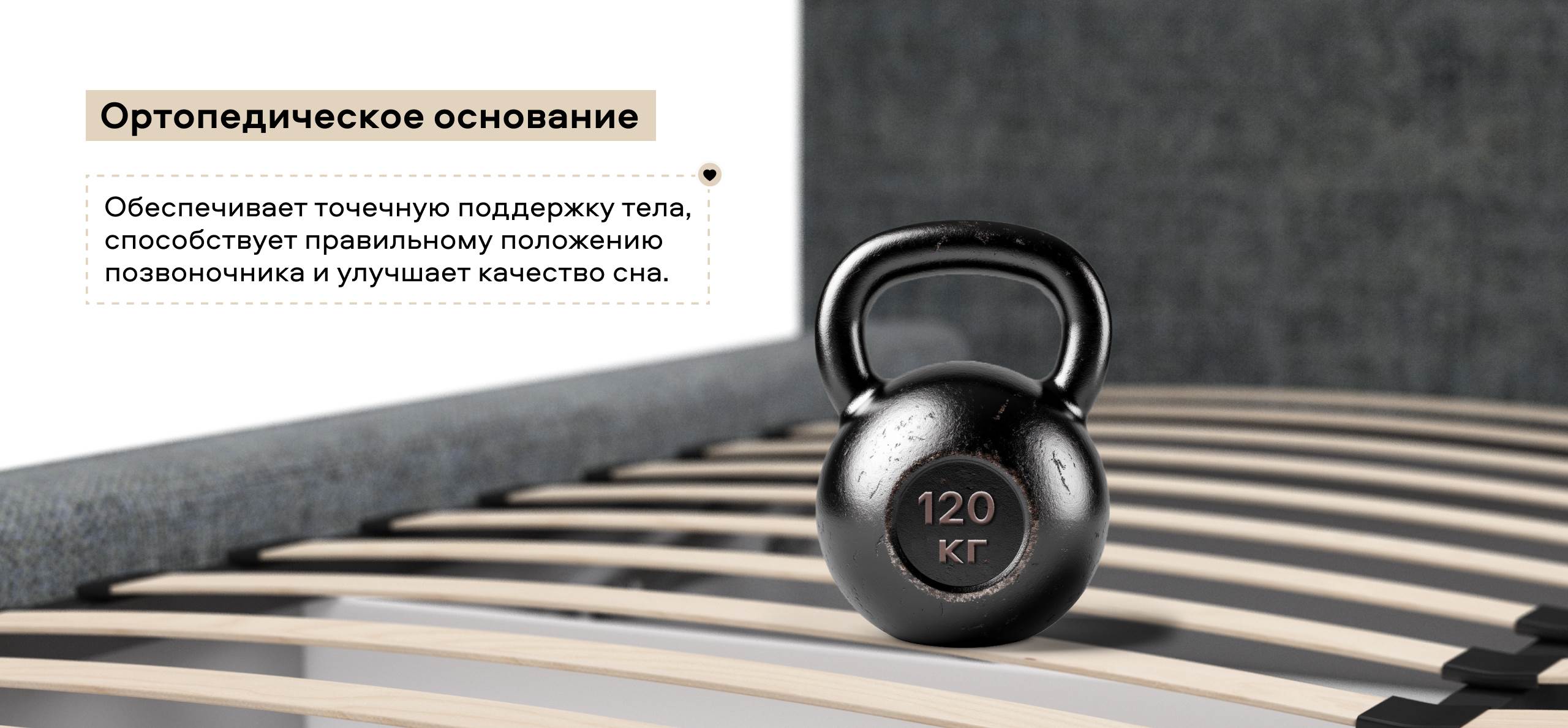 Изголовье, напоминающее две уютные подушки, и ортопедическое основание из берёзовых ламелей гарантируют правильное распределение веса и поддержку спины, что способствует здоровому и восстанавливающему сну.