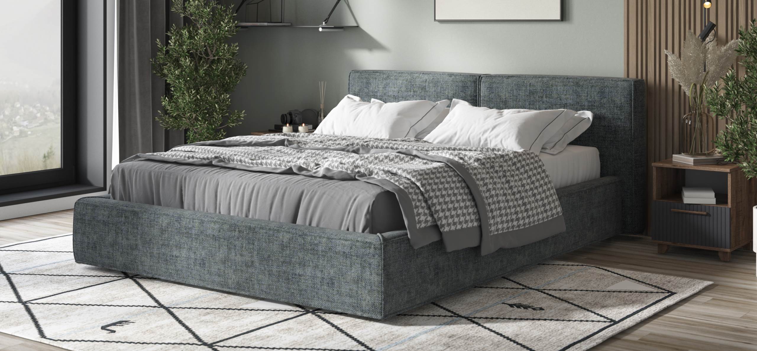 Норд Кровать+ПМ 160*200 Шенилл Смарт серый