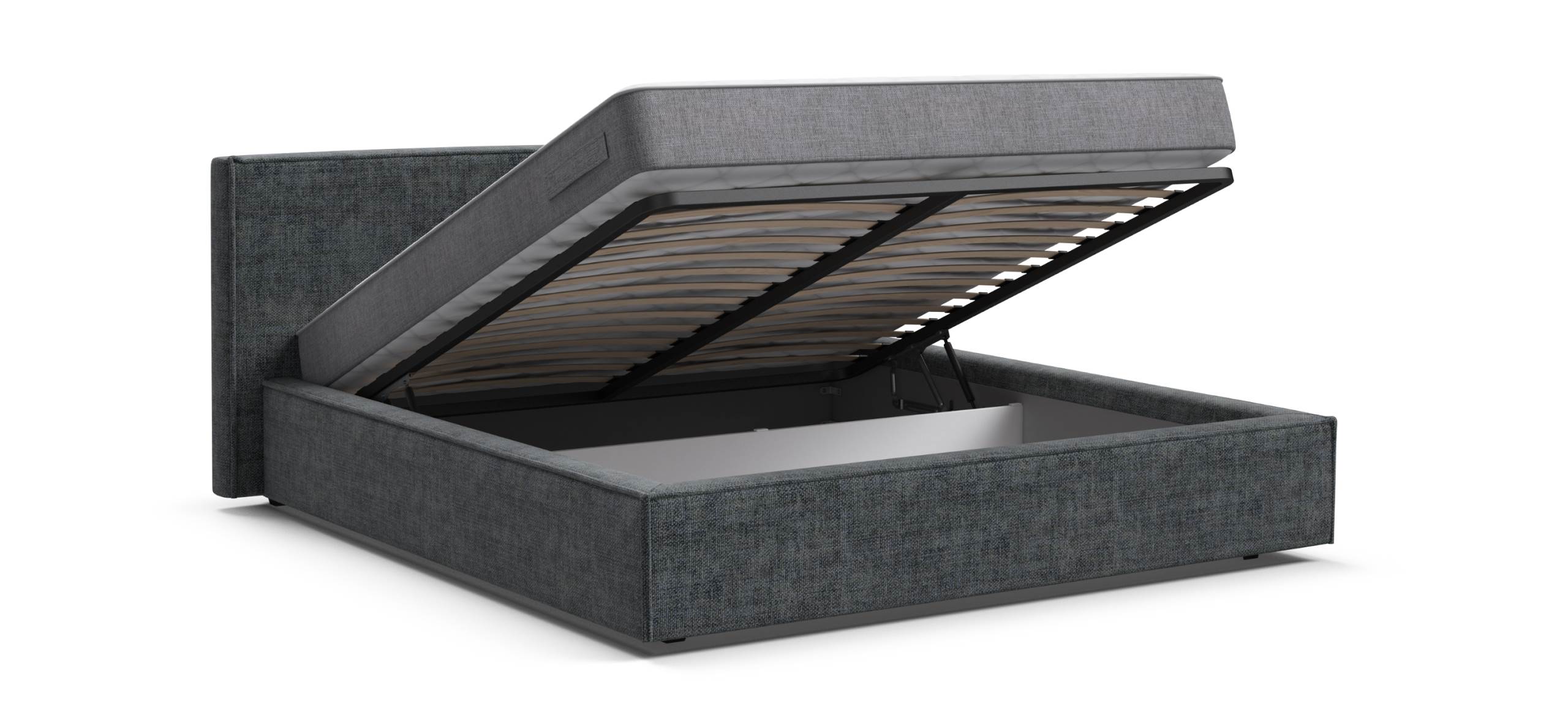 NORD также предлагает практичные решения для ежедневного использования, включая просторный бельевой ящик, который облегчает хранение и помогает сохранять порядок в спальне. Эта кровать обеспечивает не только эстетическое удовольствие, но и повседневный комфорт и удобство.